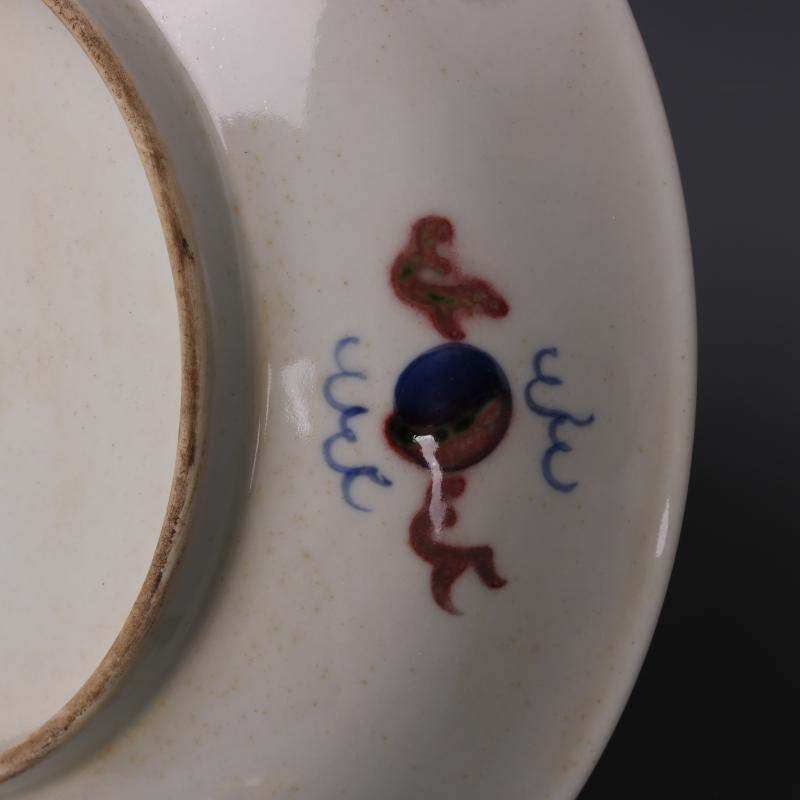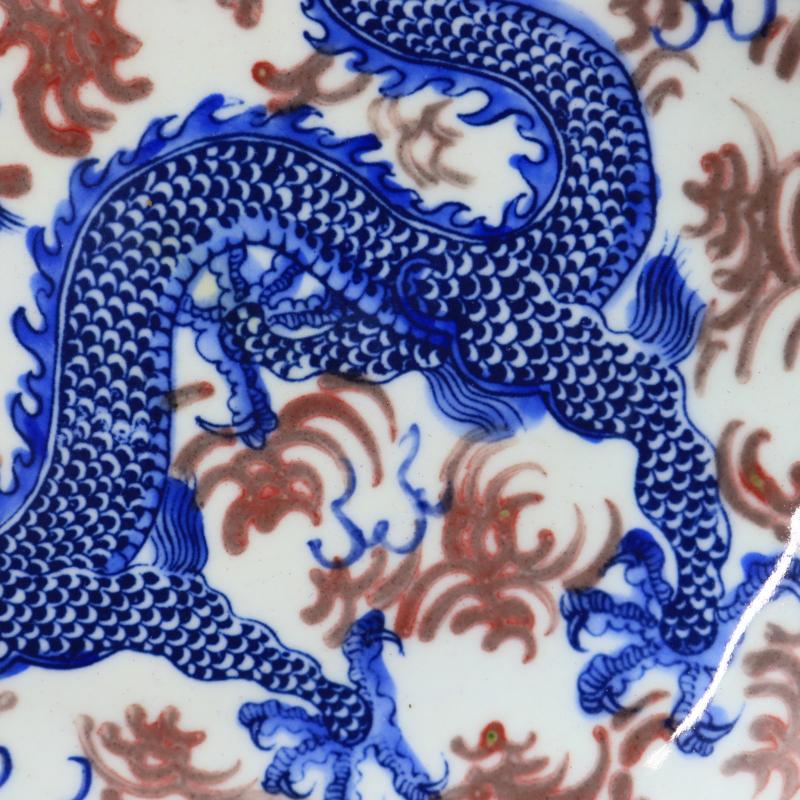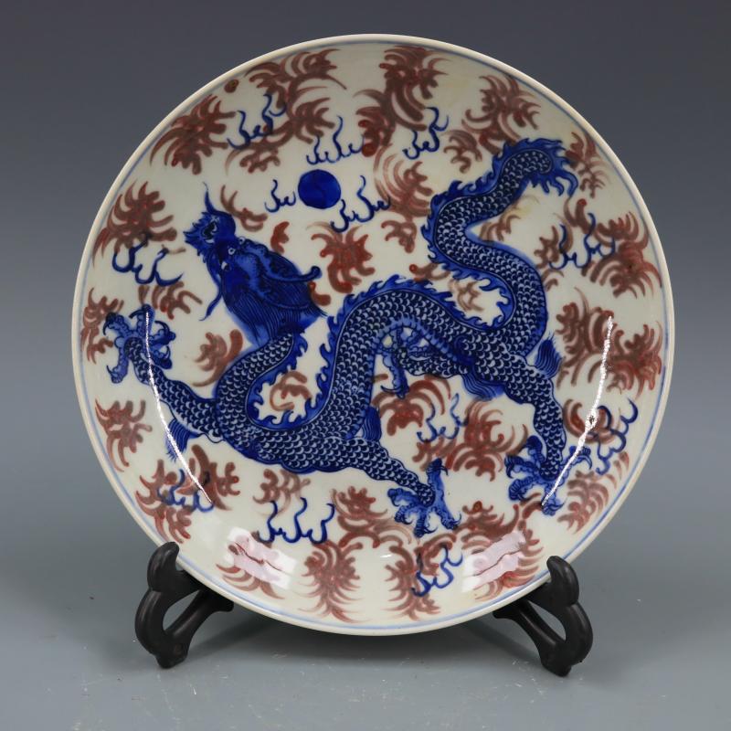 清康熙青花釉里紅云龍趕珠碗盤手繪仿古老貨瓷器家居擺件古董古玩1入
