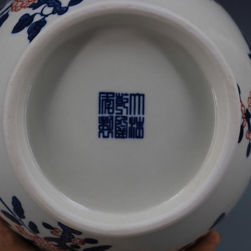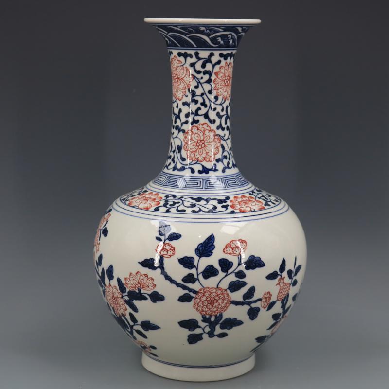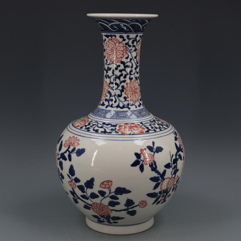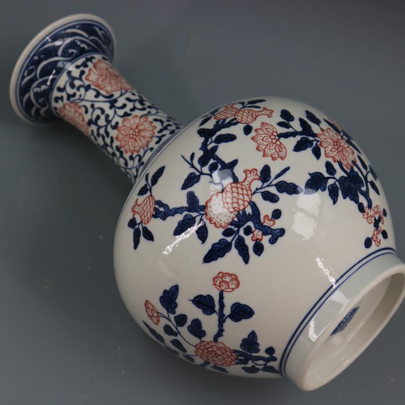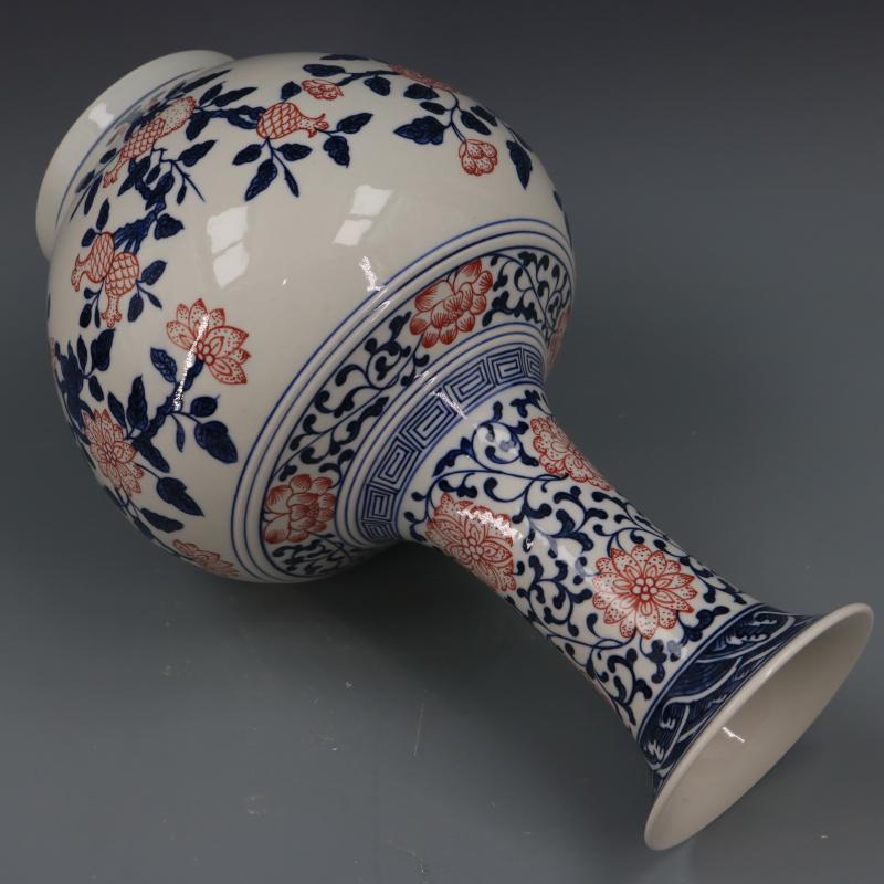 清乾隆青花釉里紅折枝花果紋賞瓶仿古瓷器家居博古擺件古董古玩1入