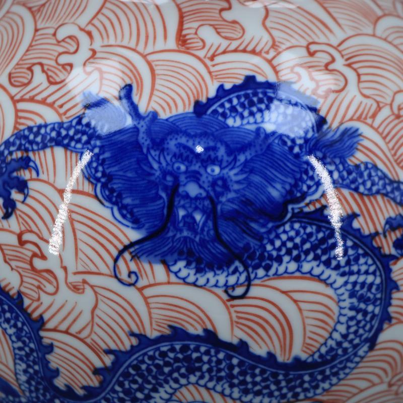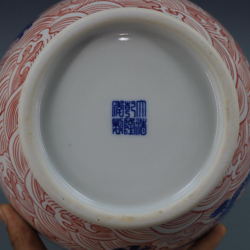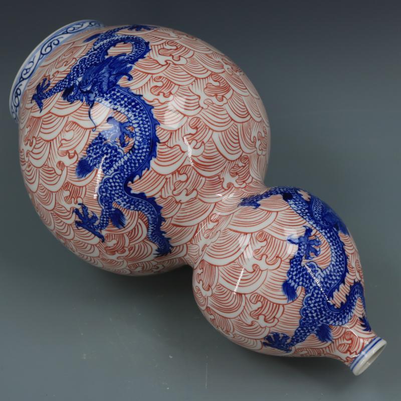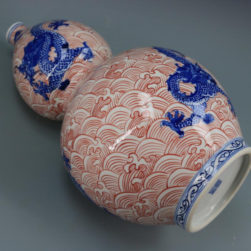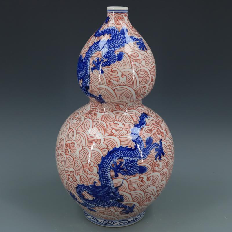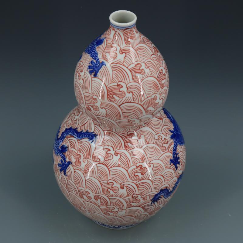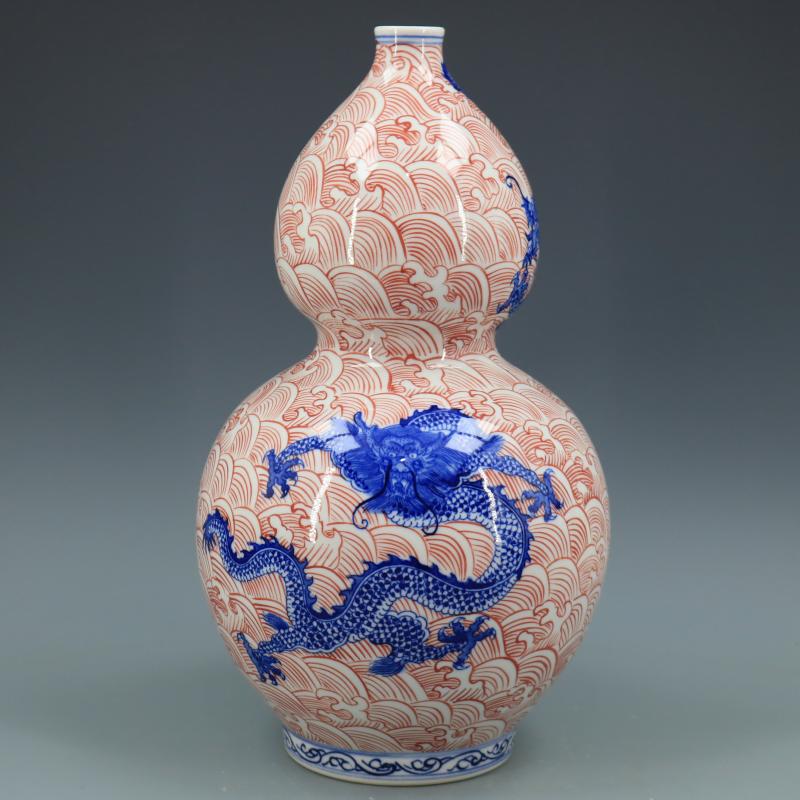 清乾隆青花釉里紅海水龍紋葫蘆瓶仿古瓷器家居博古擺件古董古玩1入