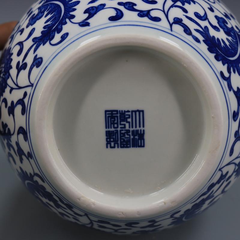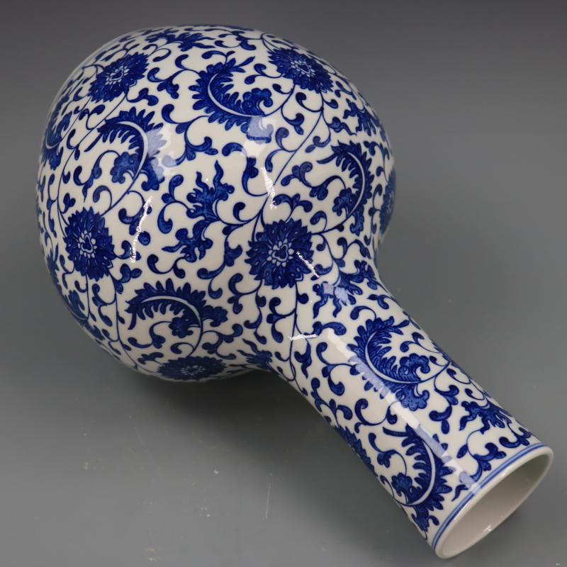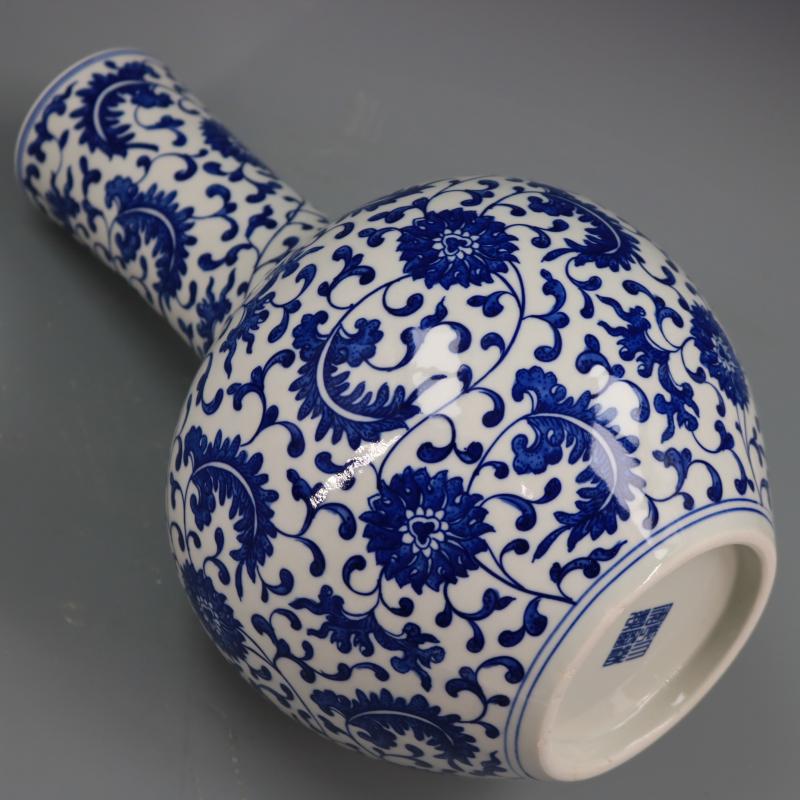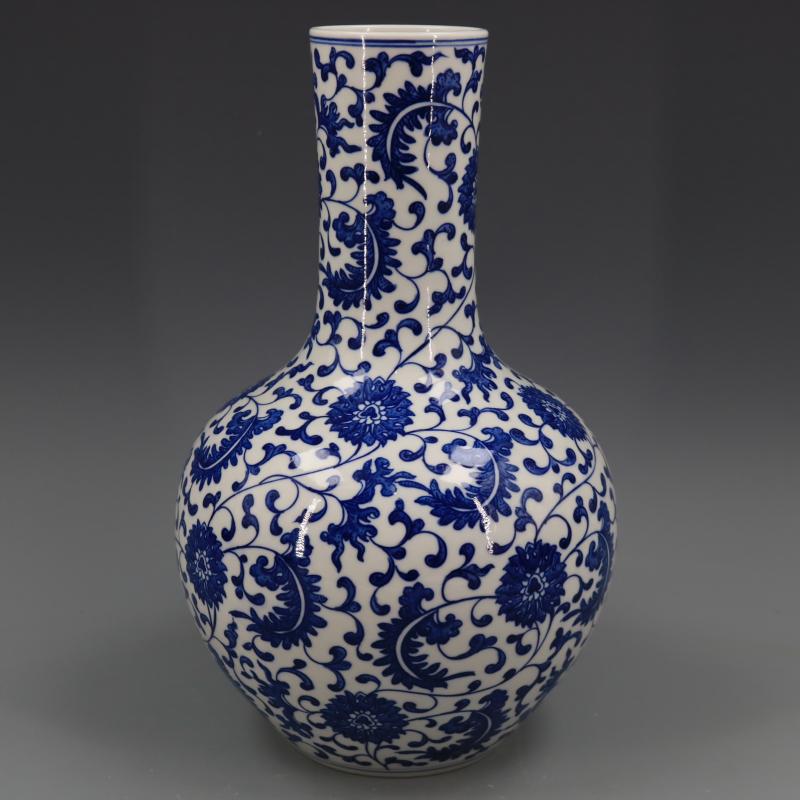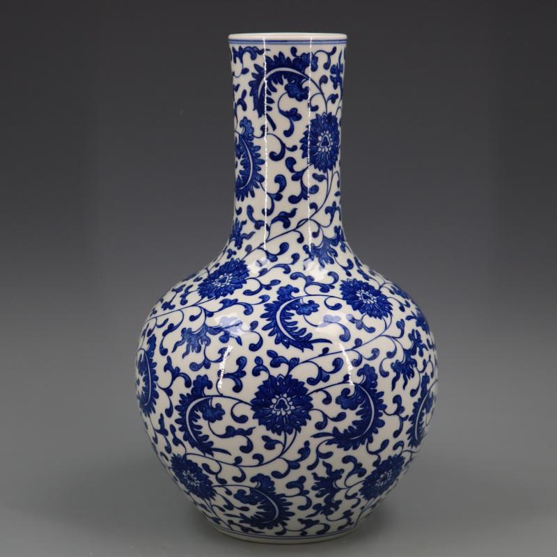 清乾隆青花纏枝蓮紋天球瓶仿古工藝瓷器家居博古擺件古董古玩收藏1入