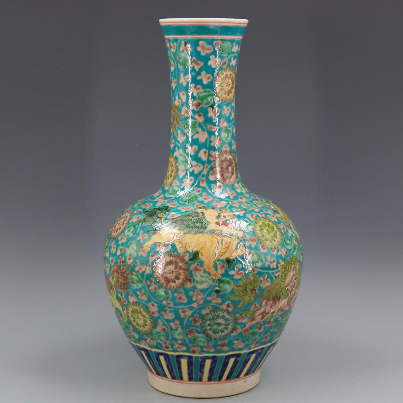 清康熙粉彩滿工穿花麒麟紋賞瓶仿古工藝瓷器家居復古擺件古董古玩1入