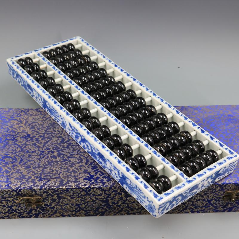 清乾隆青花龍紋紋瓷器算盤古商用計算器算盤仿古瓷器家居古玩擺件1入