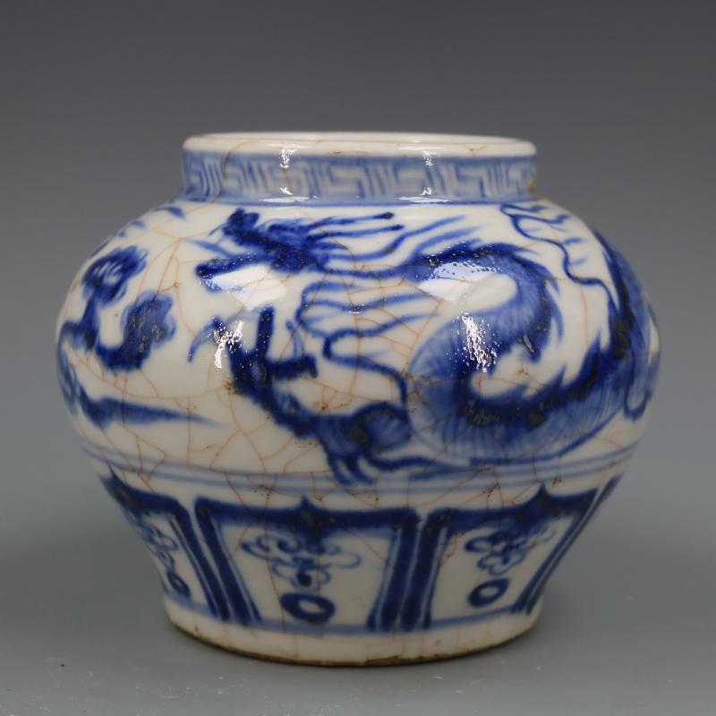 元青花云龍紋罐純手工仿古柴窯瓷器家居裝飾擺件古董古玩老貨收藏1入