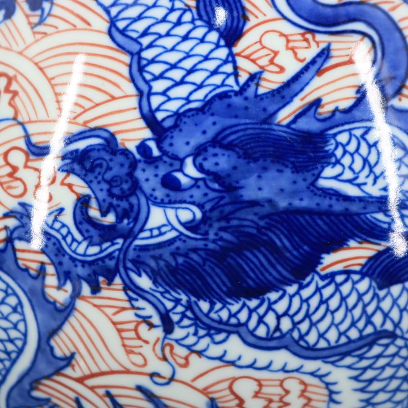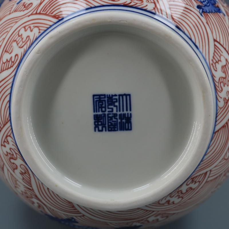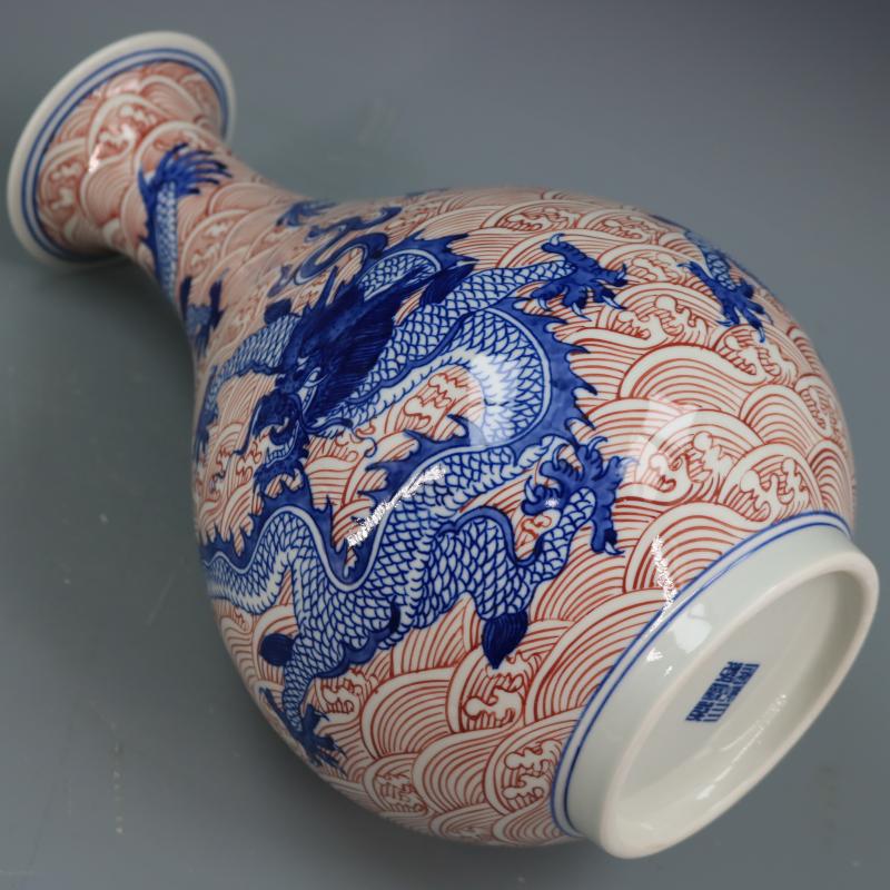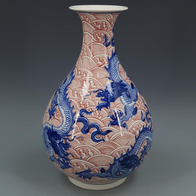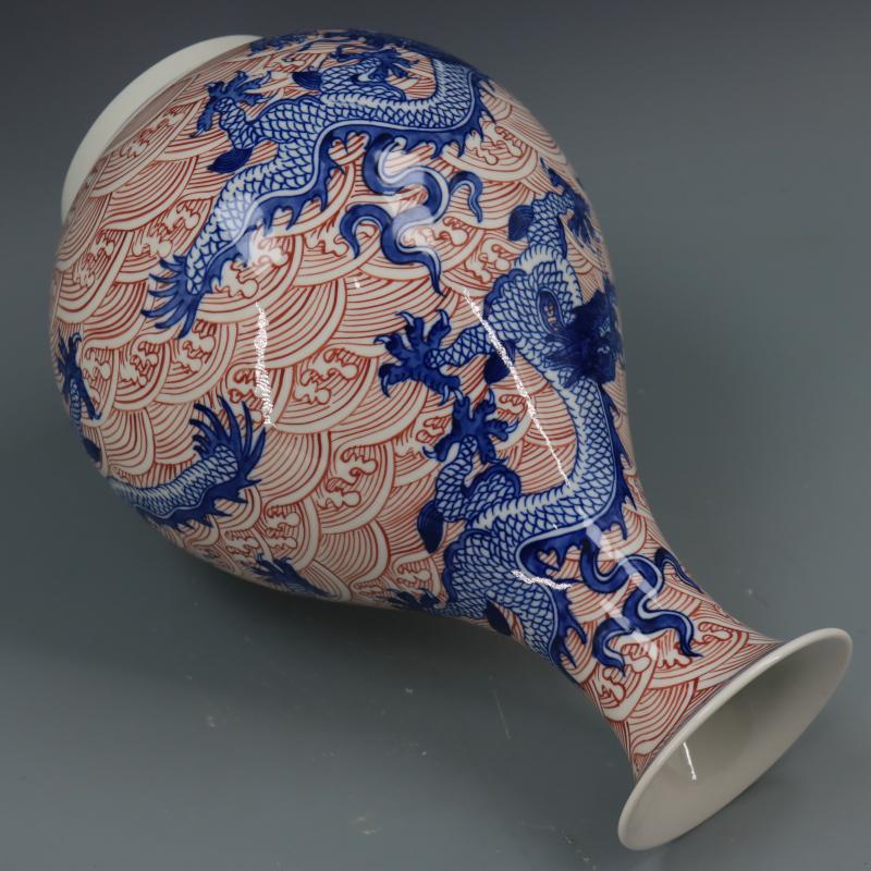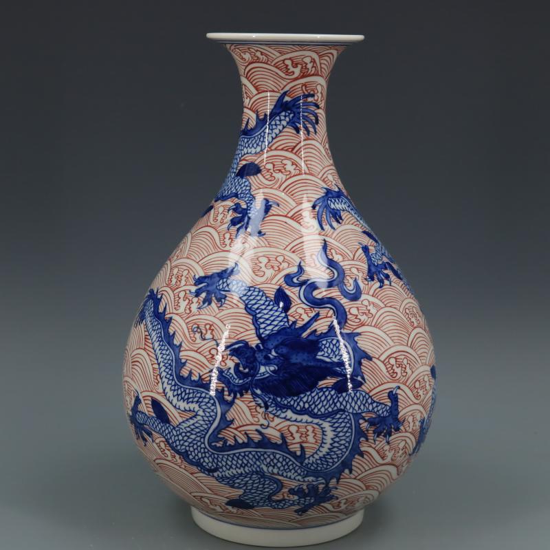 清乾隆青花釉里紅海水龍紋玉壺春瓶仿古瓷器家居博古擺件古董古玩1入