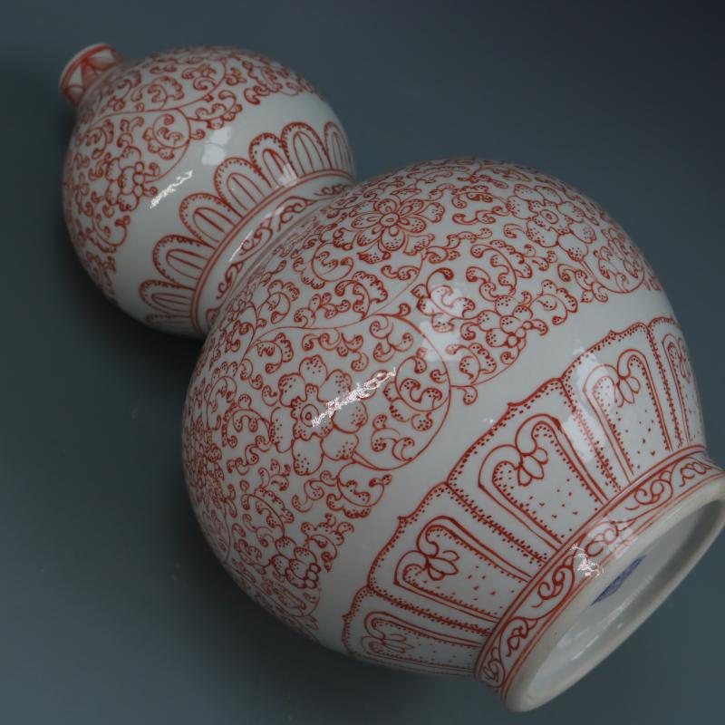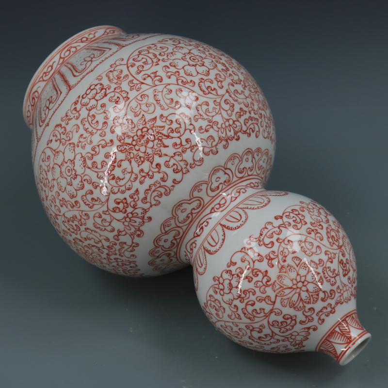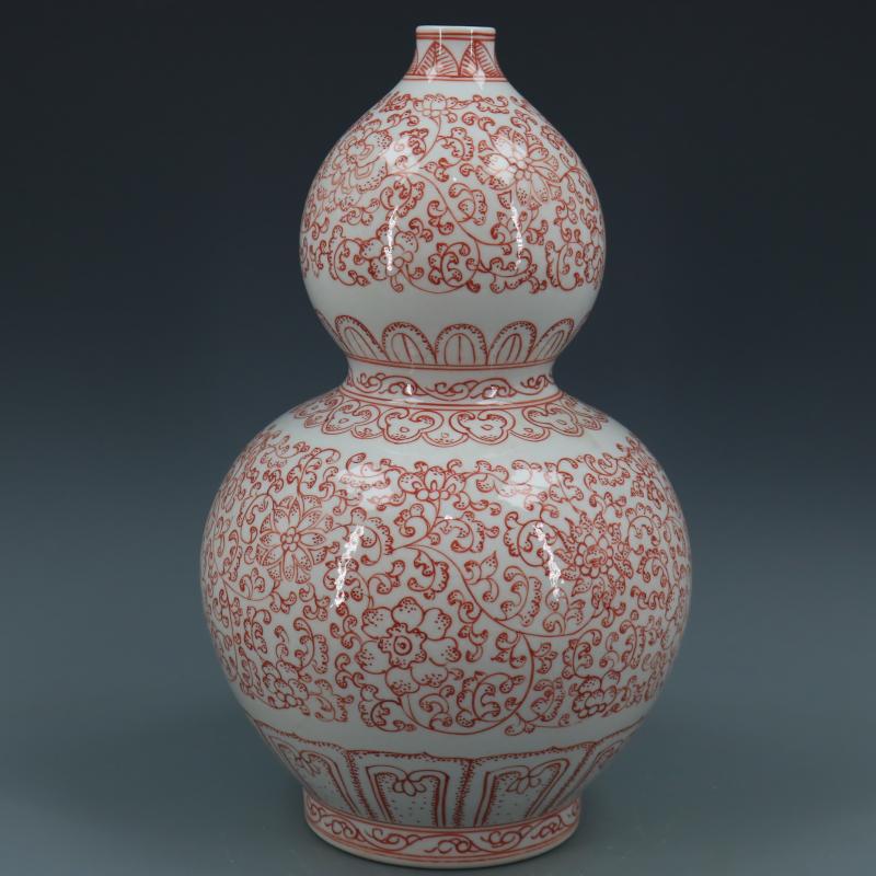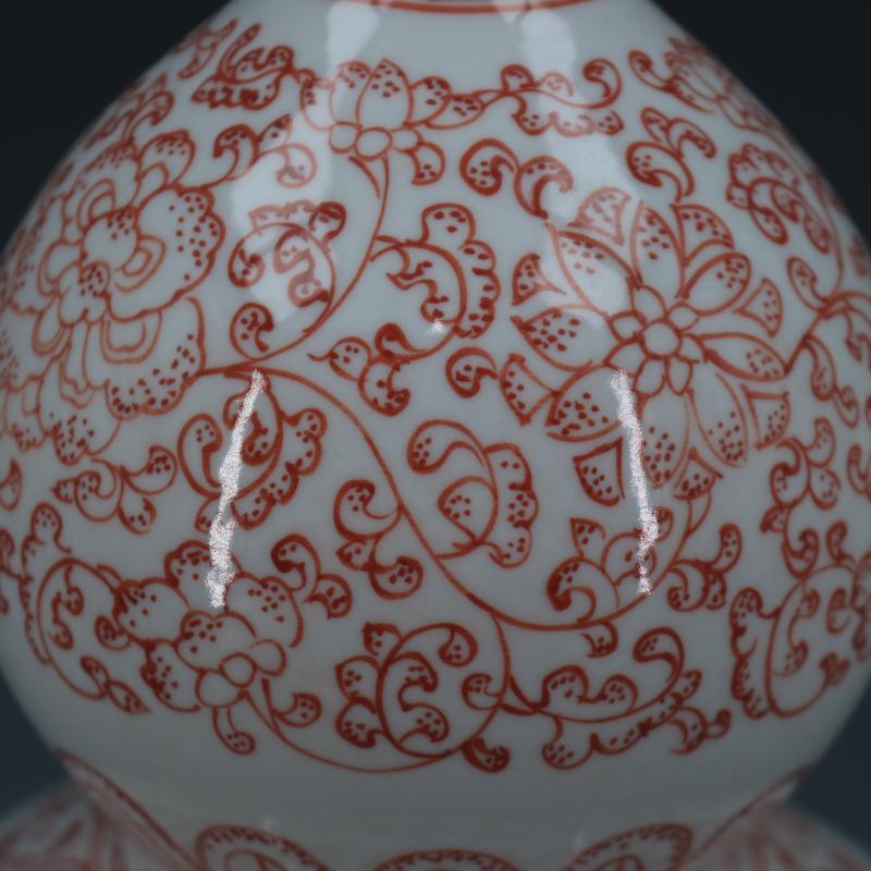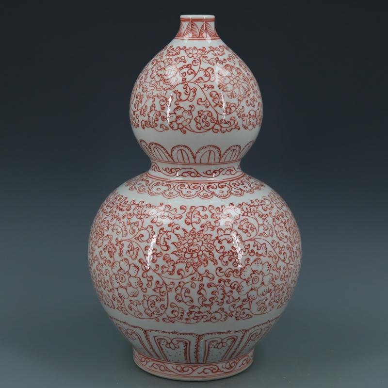 清乾隆釉里紅纏枝蓮紋葫蘆瓶仿古瓷器家居博古擺件古董古玩收藏1入