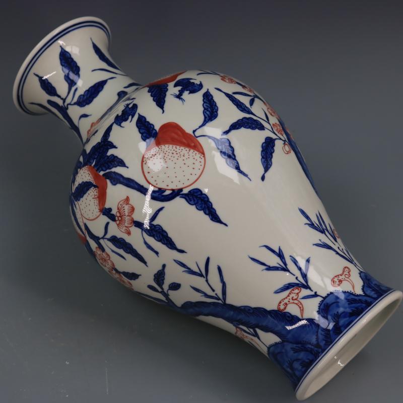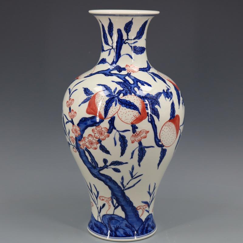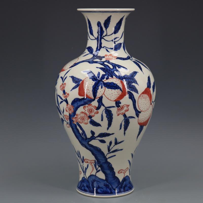 清乾隆青花釉里紅壽桃紋魚尾瓶仿古瓷器家居博古擺件古董古玩收藏1入