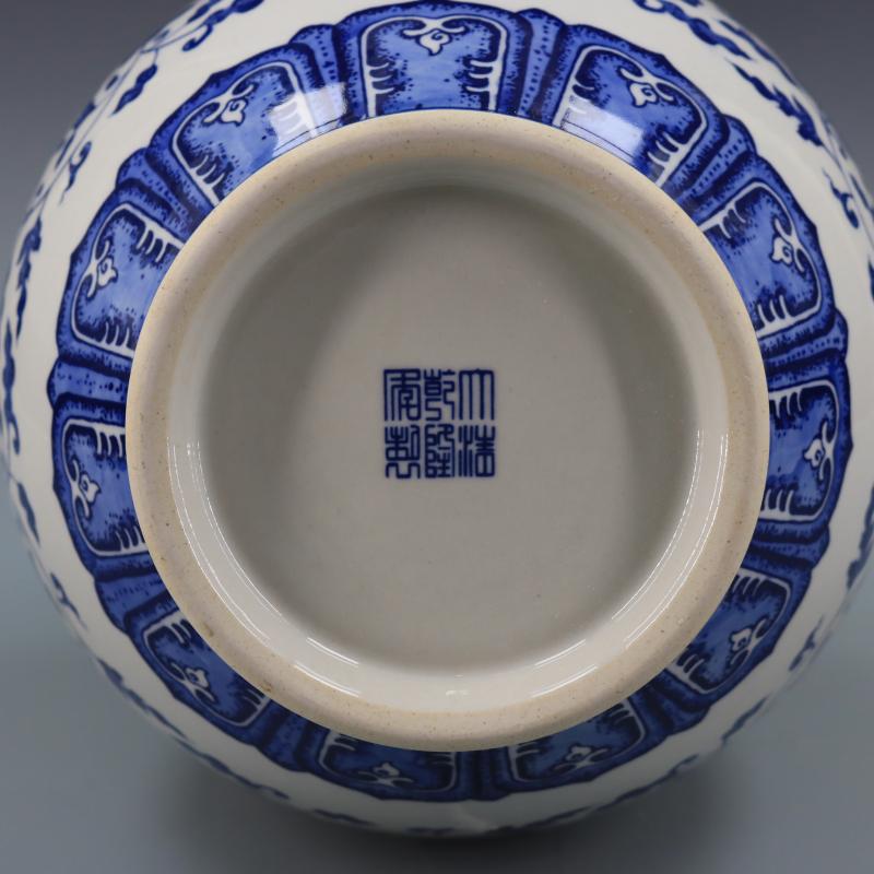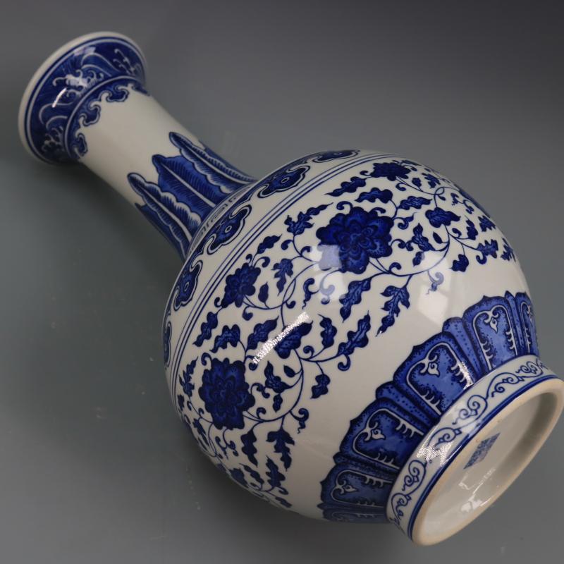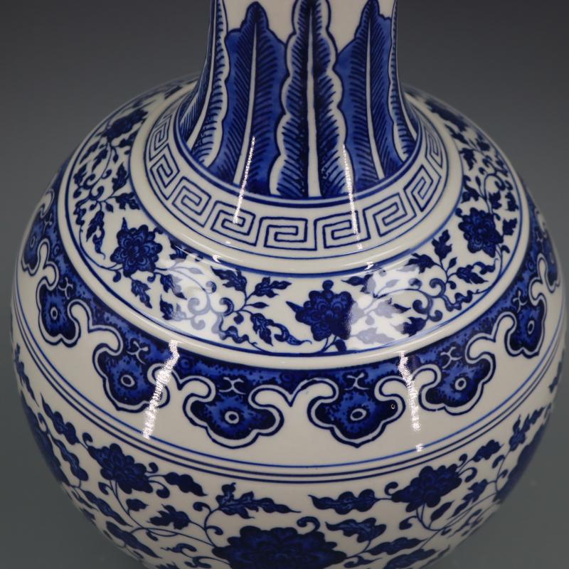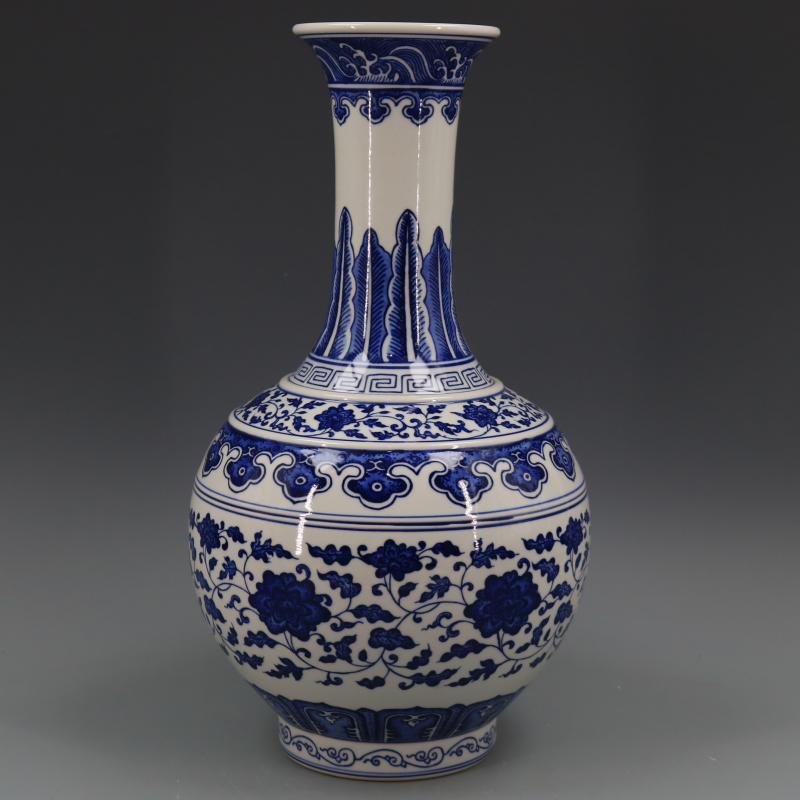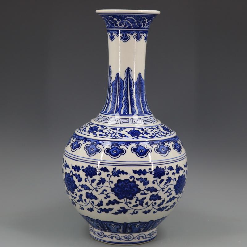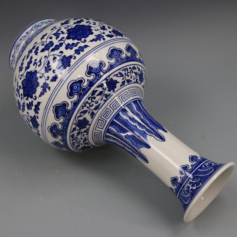 清乾隆青花纏枝蓮紋賞瓶仿古工藝瓷器家居博古擺件古董古玩收藏1入