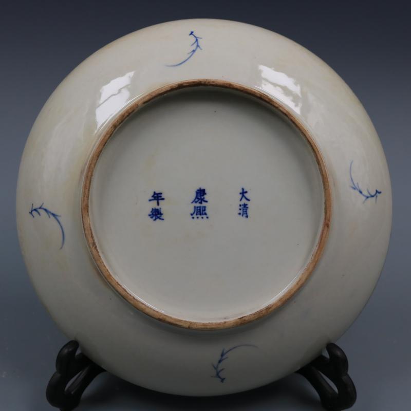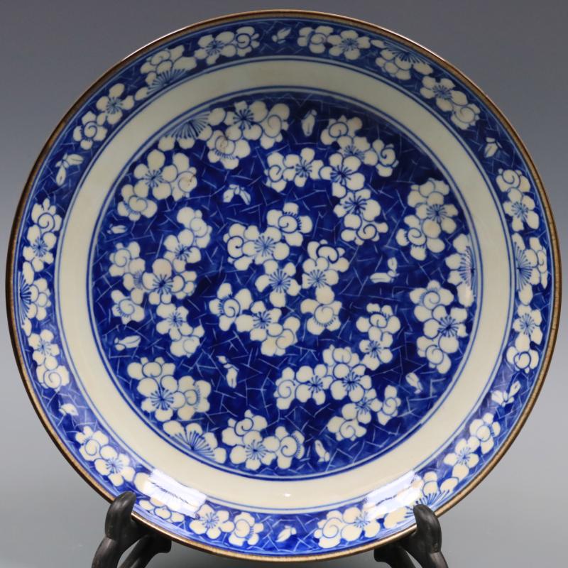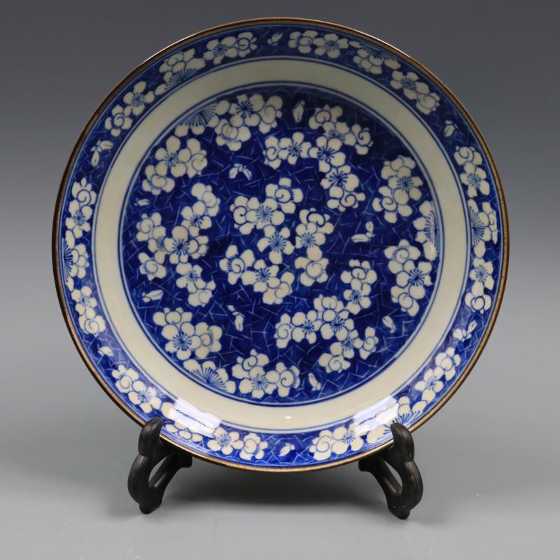 清康熙青花冰梅紋盤純手繪仿古工藝瓷器家居博古裝飾擺件古董古玩1入