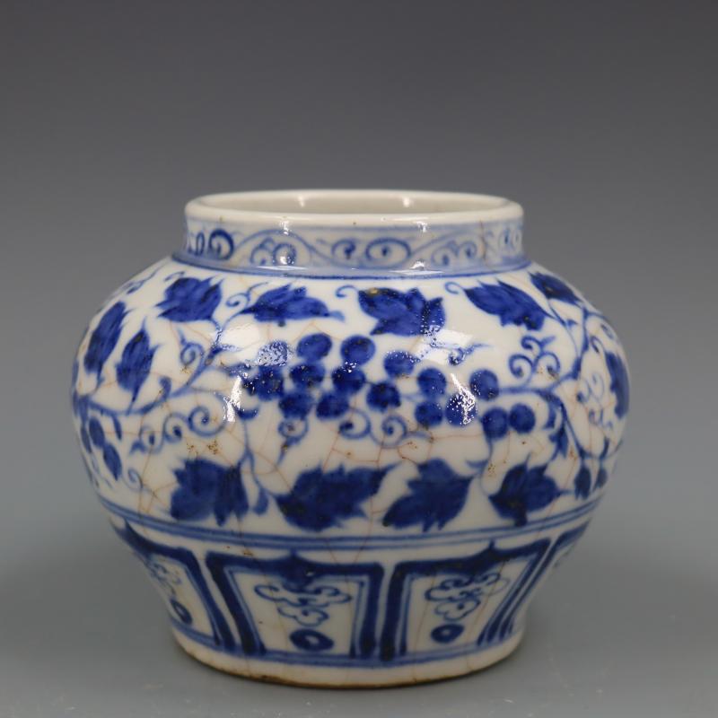 元青花纏枝花紋罐手工仿古柴窯瓷器家居裝飾擺件古董古玩老貨收藏1入