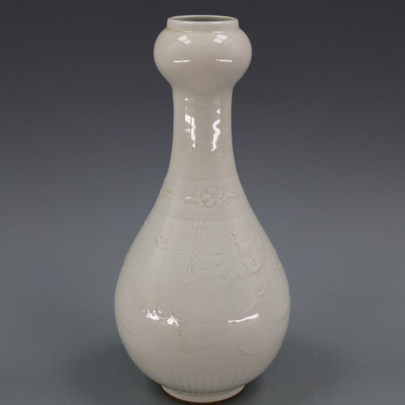 元區府窯甜白釉刻云龍紋蒜頭瓶純手工仿古老貨瓷器擺件古董古玩1入
