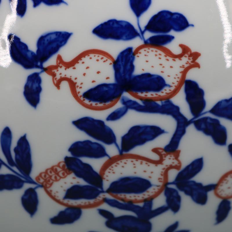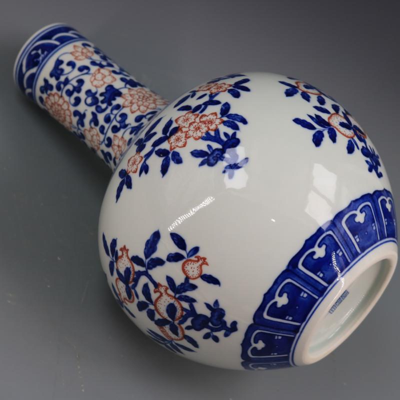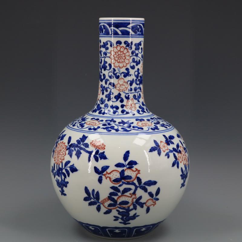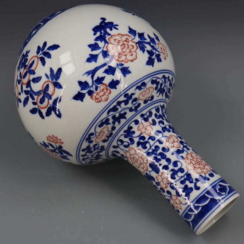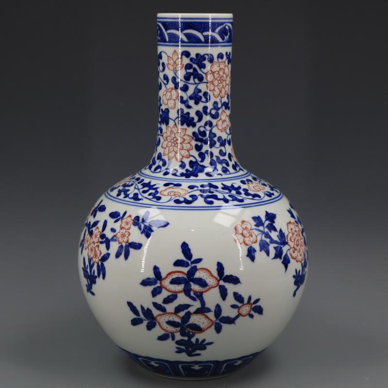清乾隆青花釉里紅折枝花果紋天球瓶仿古瓷器家居博古擺件古董古玩1入