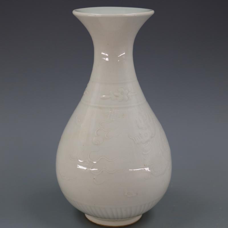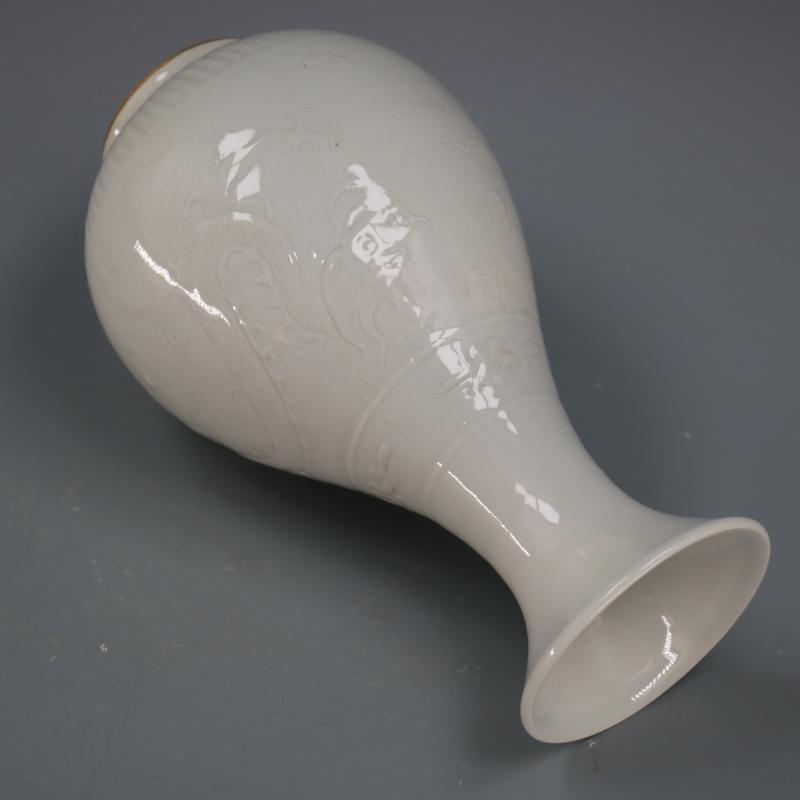 元區府窯甜白釉刻云龍紋玉壺春瓶純手工仿古老貨瓷器擺件古董古玩1入