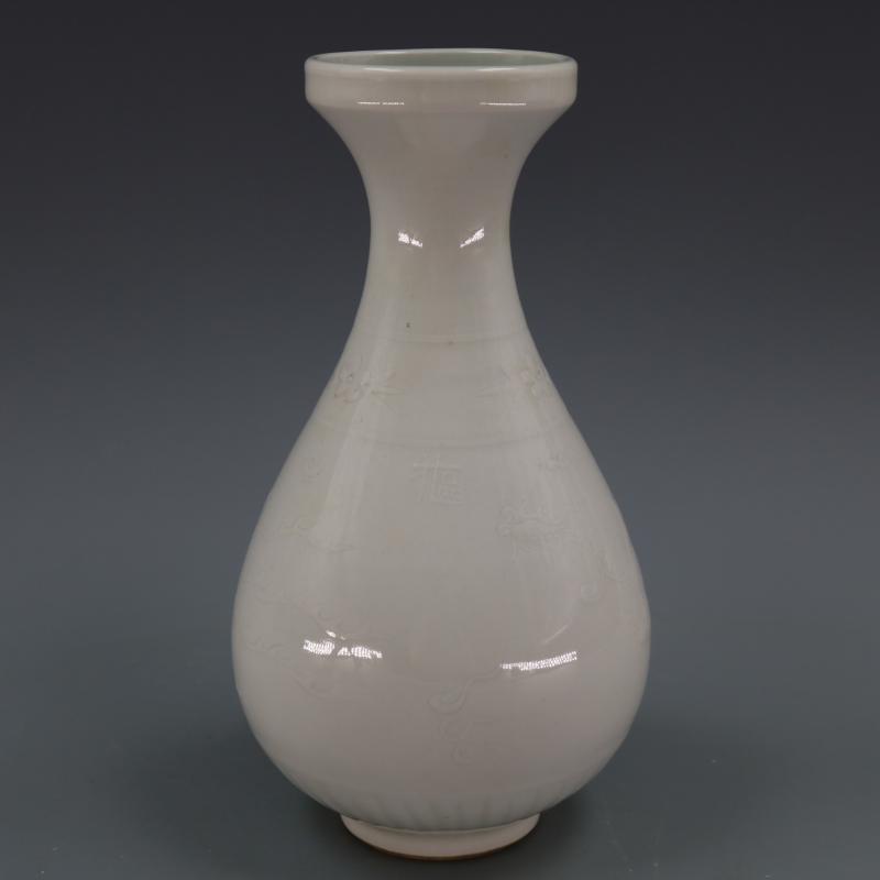元區府窯甜白釉刻鳳紋玉壺春瓶純手工仿古老貨瓷器擺件古董古玩1入