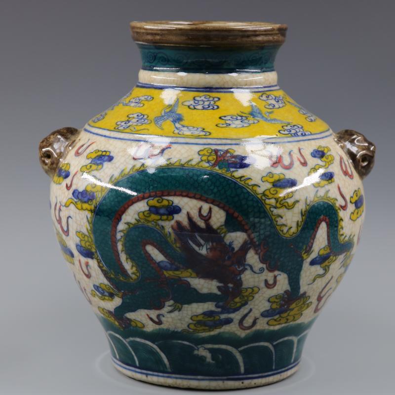 清乾隆年制青花五彩云龍紋狗頭罐仿古老貨瓷器家居擺件古董古玩1入