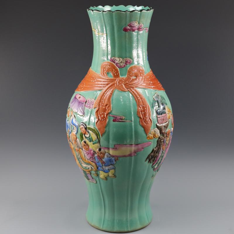 清乾隆浮雕刻粉彩人物觀音瓶手繪仿古老貨瓷器家居擺件古董古玩1入