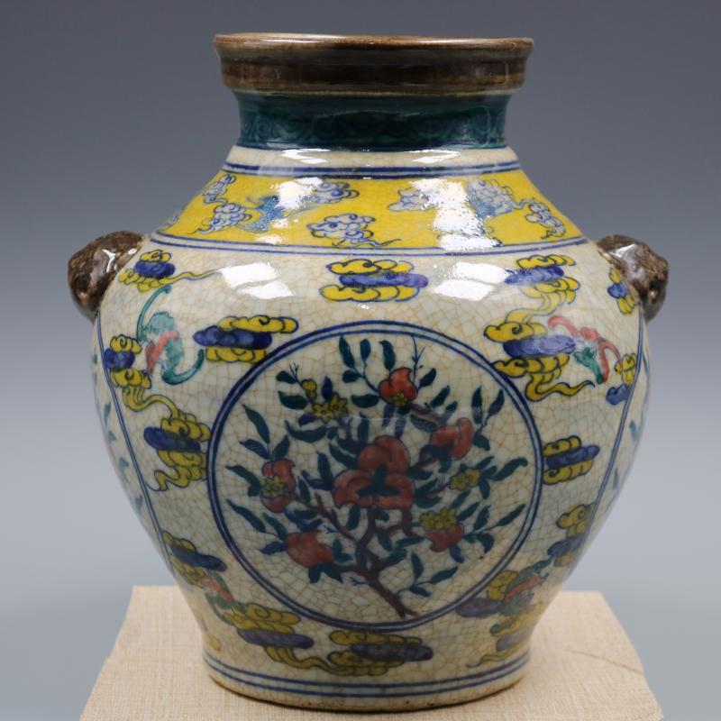 清乾隆年制青花五彩開光瓜果紋狗頭罐仿古老貨瓷器家居古玩擺件1入