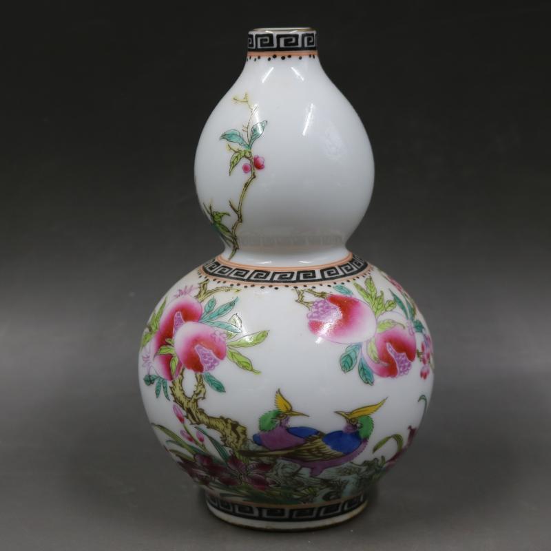 清乾隆粉彩石榴花鳥葫蘆瓶家居裝飾瓷器擺件古董古玩老貨博古收藏1入