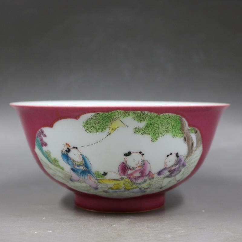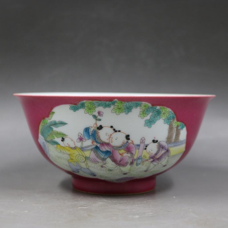 清雍正粉彩開光人物碗仿古工藝品瓷器家居裝飾古董古玩擺件收藏1入