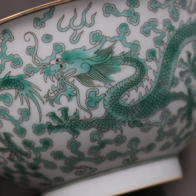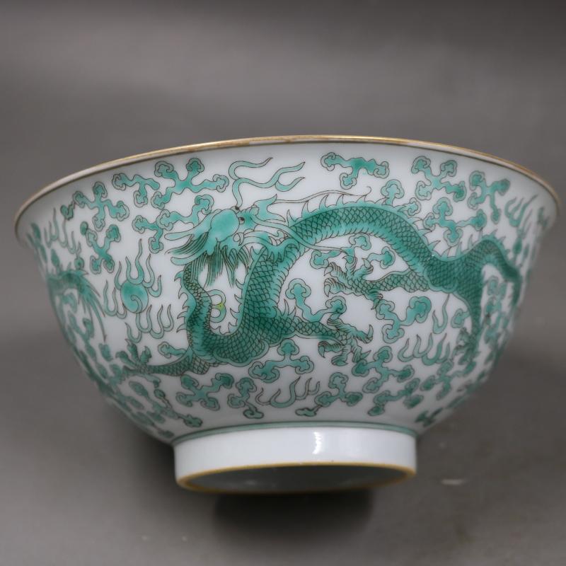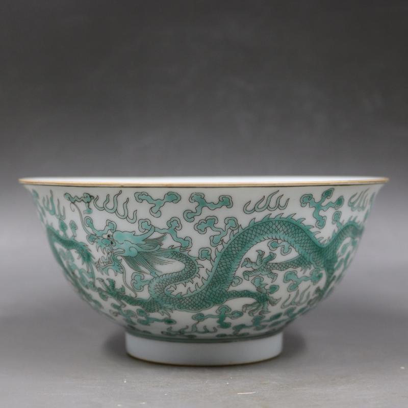 清雍正粉彩穿花龍紋碗手工仿古工藝品瓷器家居古董古玩擺件收藏1入
