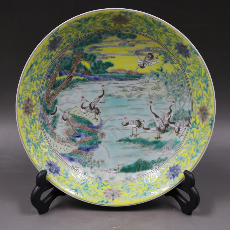 清雍正粉彩描本金花鳥盤仿古家居博古架瓷器擺件古董古玩老貨收藏1入
