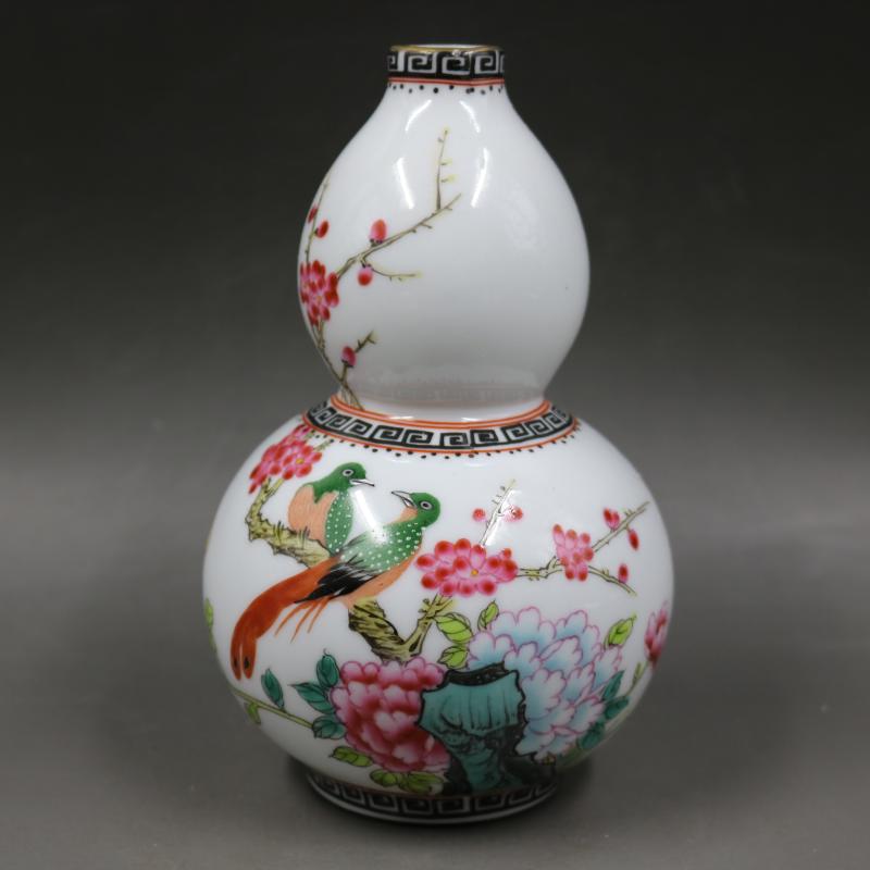 [2]清乾隆粉彩荷花花鳥葫蘆瓶家居裝飾瓷器擺件古董古玩老貨博古收藏1入