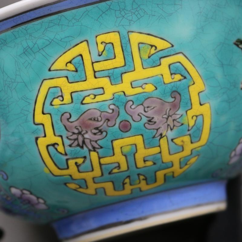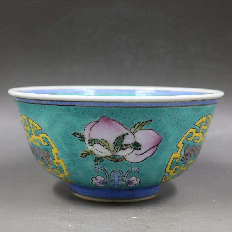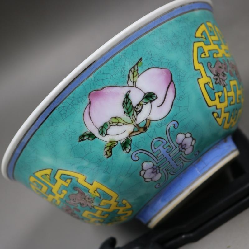 清雍正綠地粉彩壽桃碗仿古老貨包老瓷器家居裝飾擺件古董古玩收藏1入