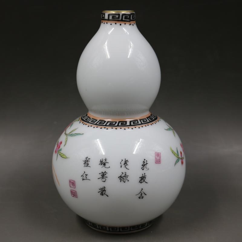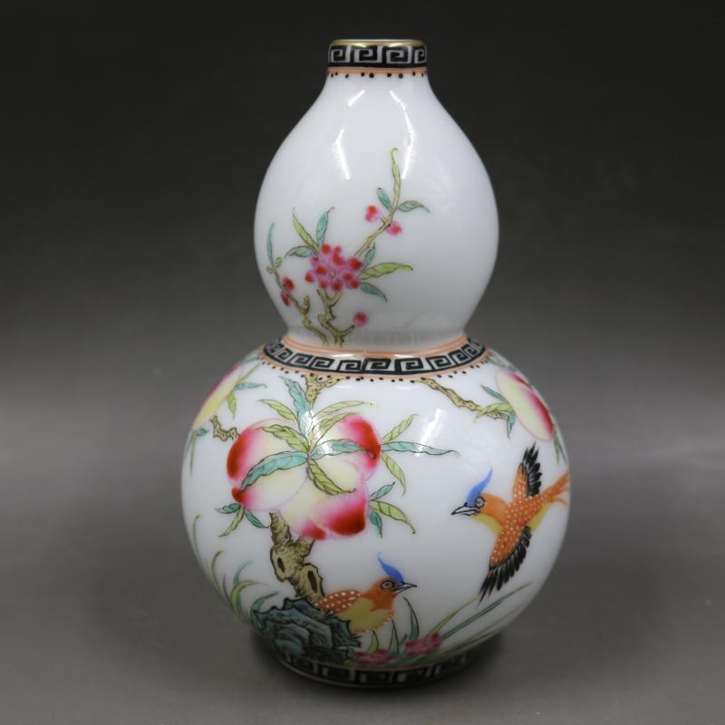 清乾隆粉彩壽桃花鳥葫蘆瓶家居裝飾瓷器擺件古董古玩老貨博古收藏1入