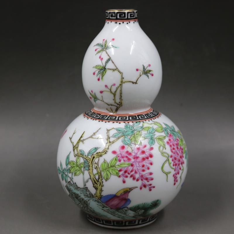 清乾隆粉彩富貴花鳥葫蘆瓶家居裝飾瓷器擺件古董古玩老貨博古收藏1入