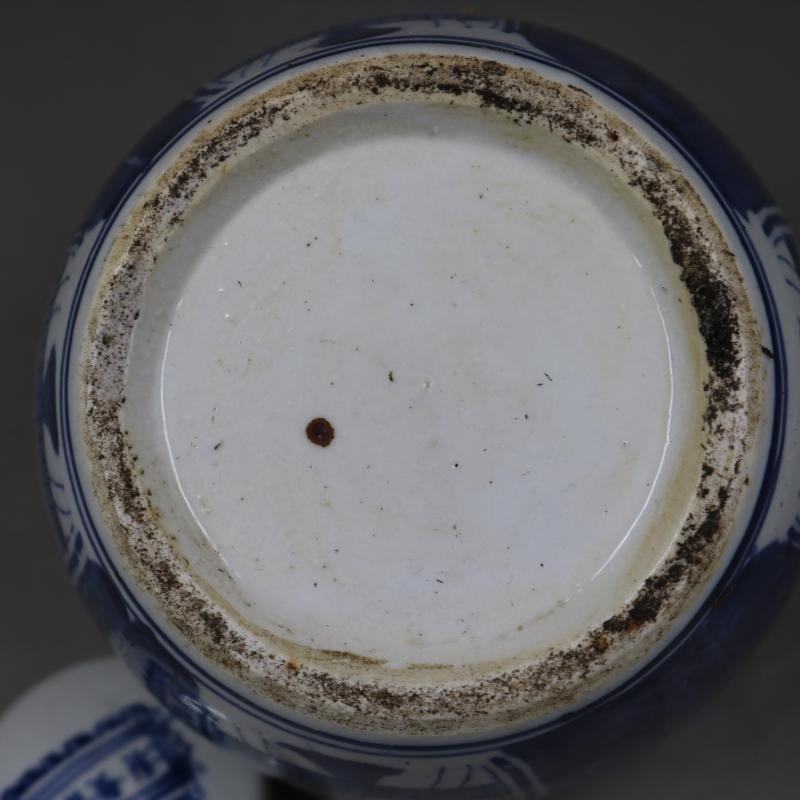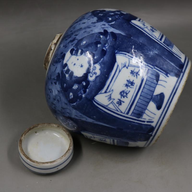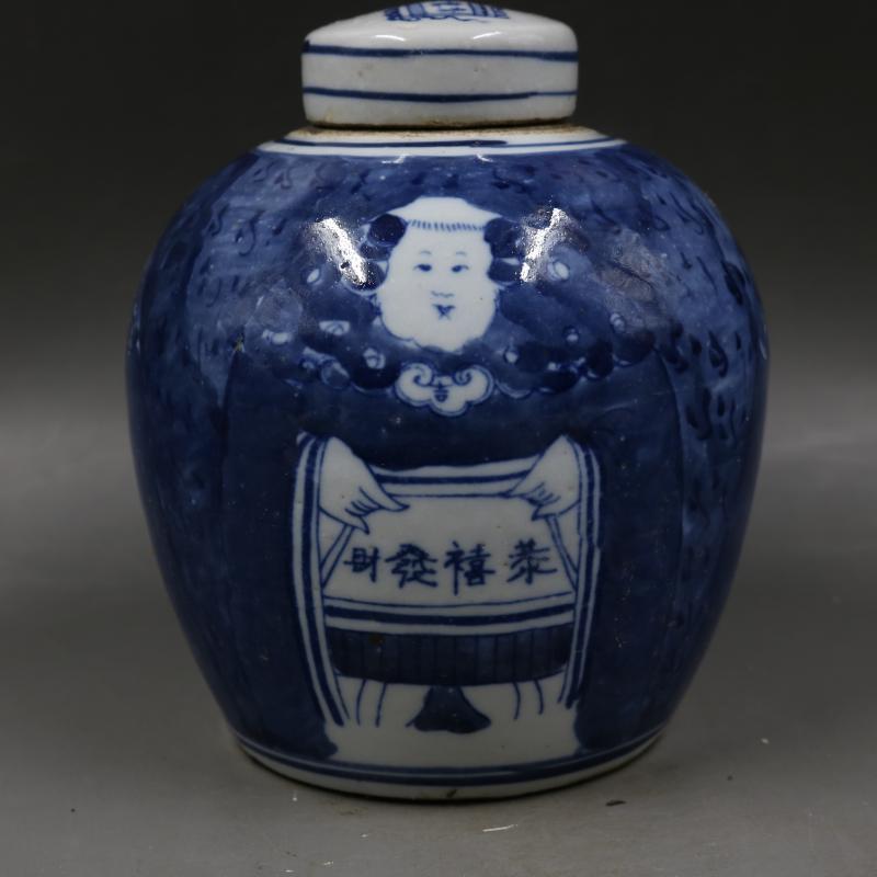 清光緒青花人物財神茶葉罐老貨古董古玩瓷器擺件家居老貨裝飾瓷器1入