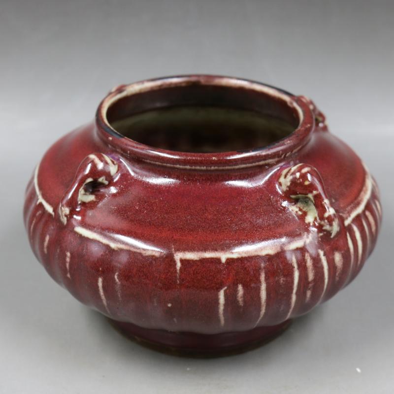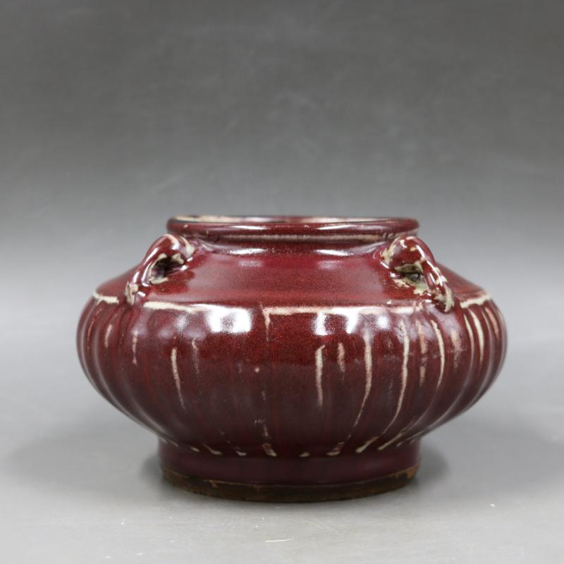 清乾隆祭郎紅釉象鼻瓜菱罐仿古瓷器古董古玩家居擺件民間收藏品1入
