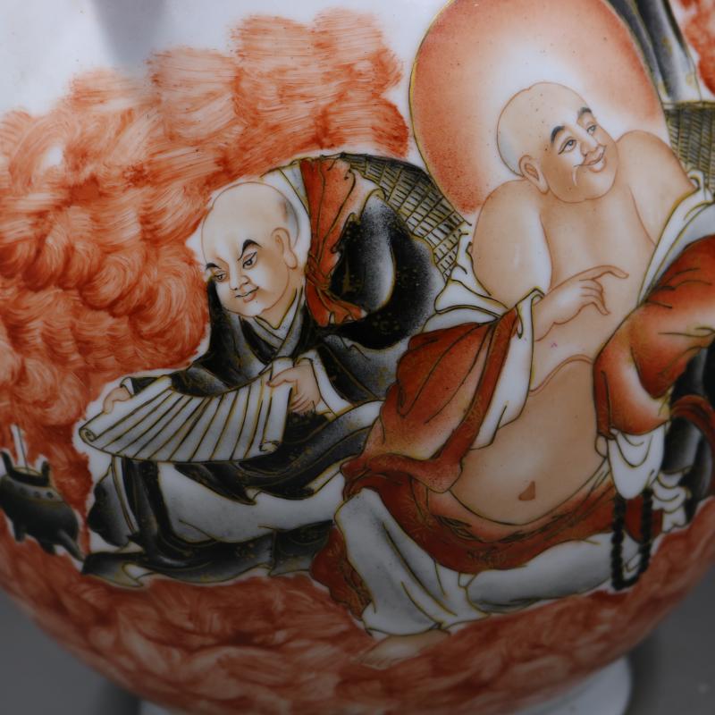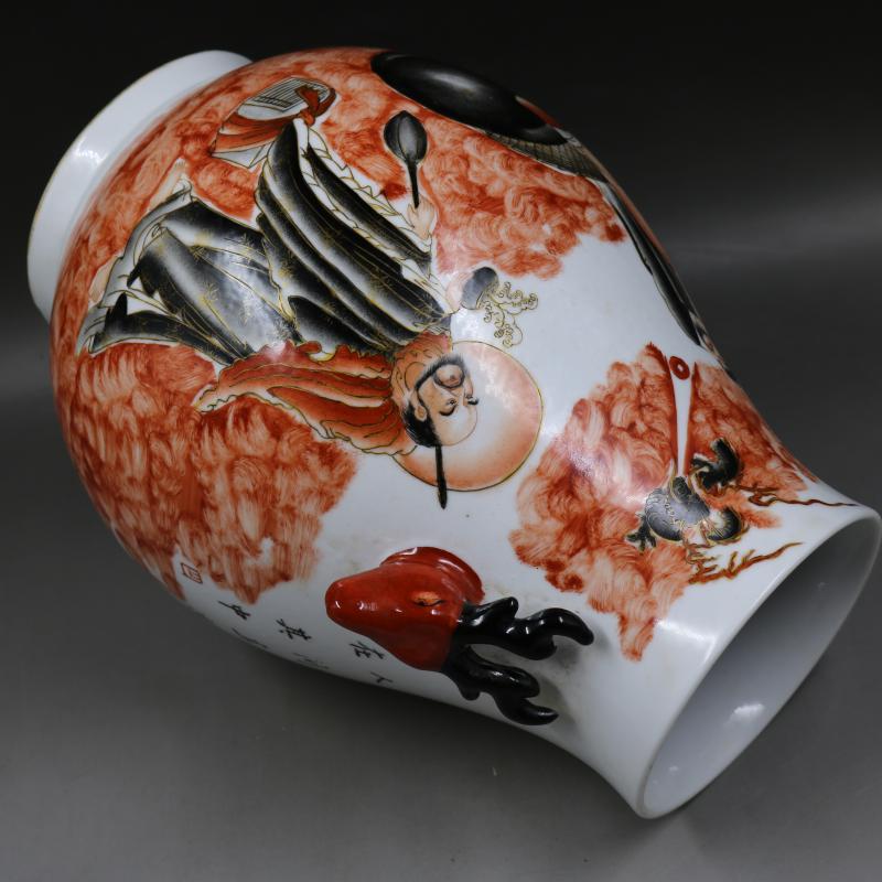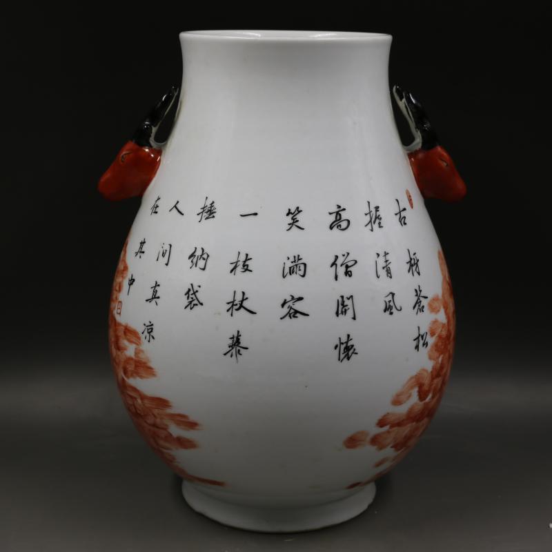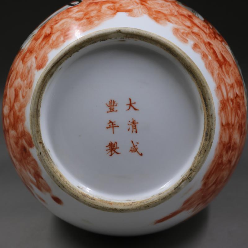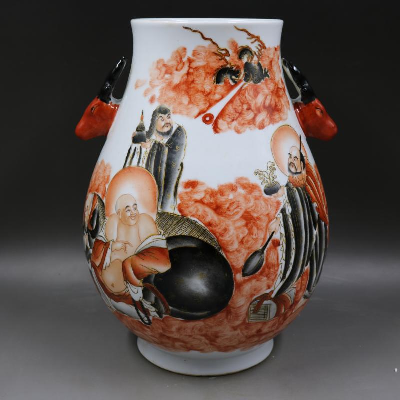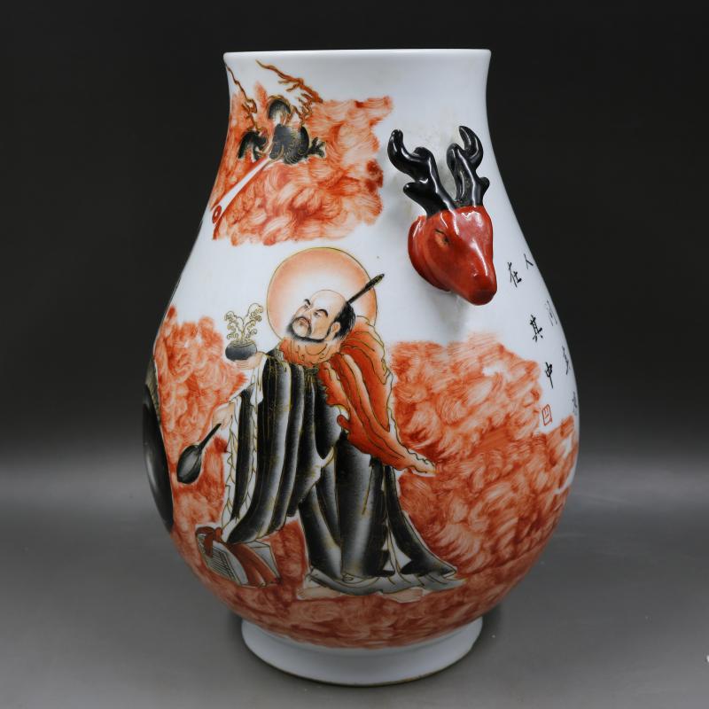 清咸豐墨彩描金人物故事鹿頭尊手繪仿古老貨瓷器古玩擺件古董收藏1入