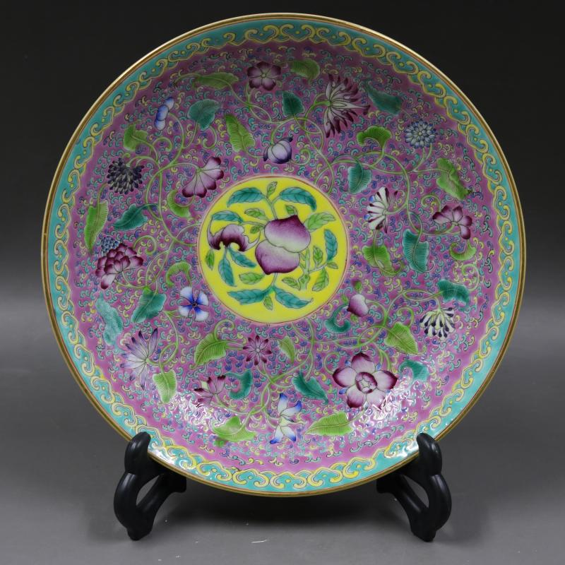 清雍正粉彩描真金花紋福壽盤仿古瓷器家居裝飾博古擺件古董古玩1入
