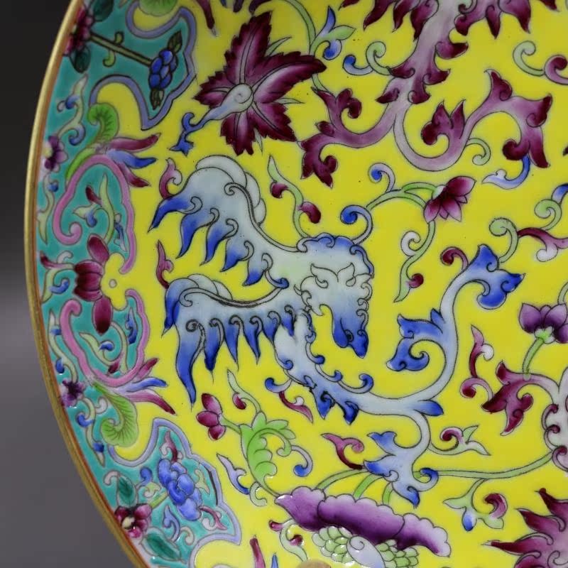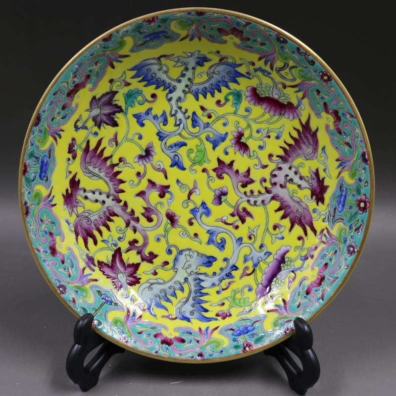 清雍正粉彩描真金鳳紋盤手工仿古瓷器家居裝飾博古擺件古董古玩1入