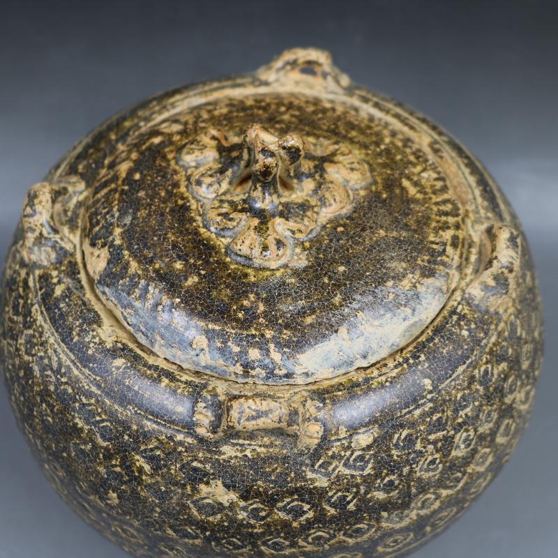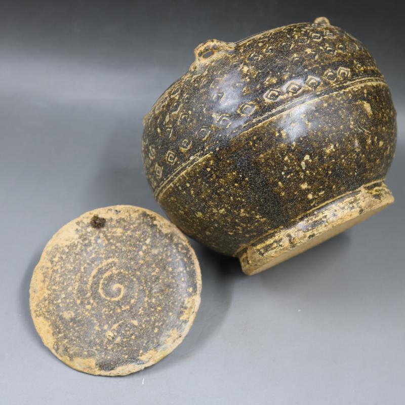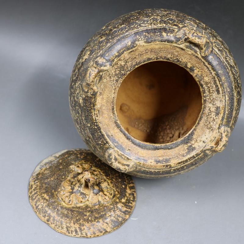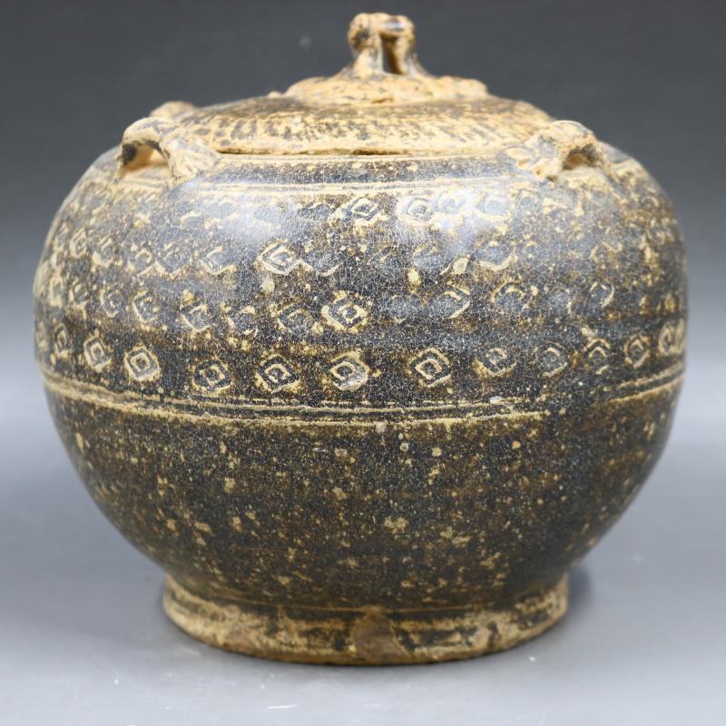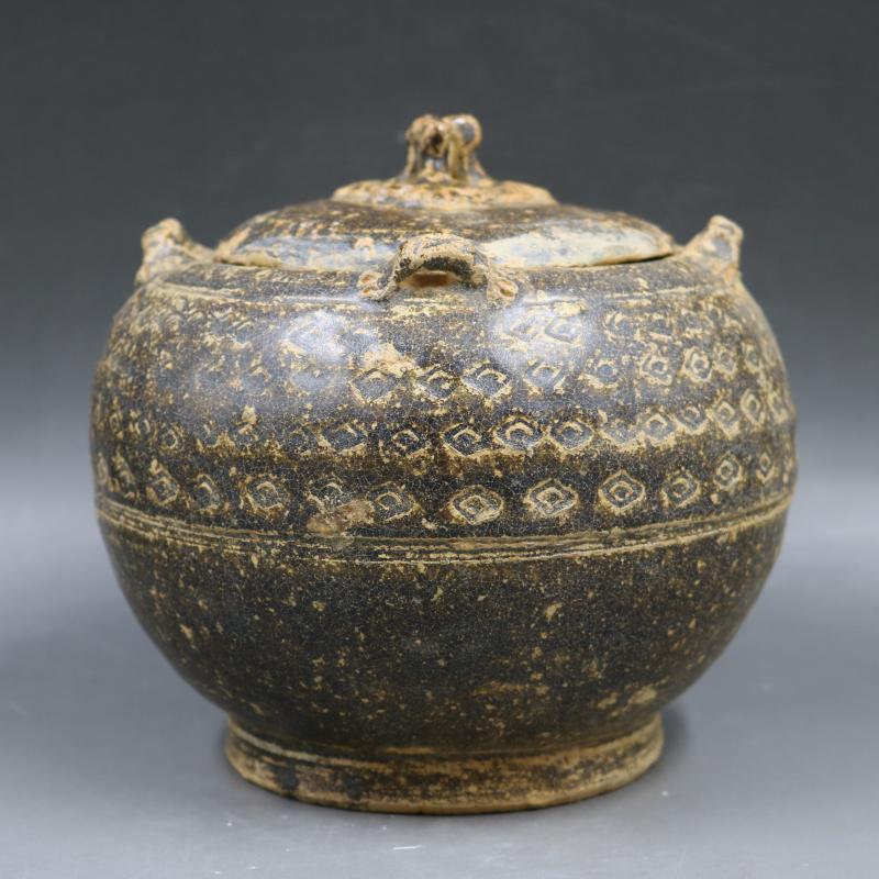 商朝越窯刻花紋多系罐手工仿古老貨包老瓷器家居復古擺件古董古玩1入