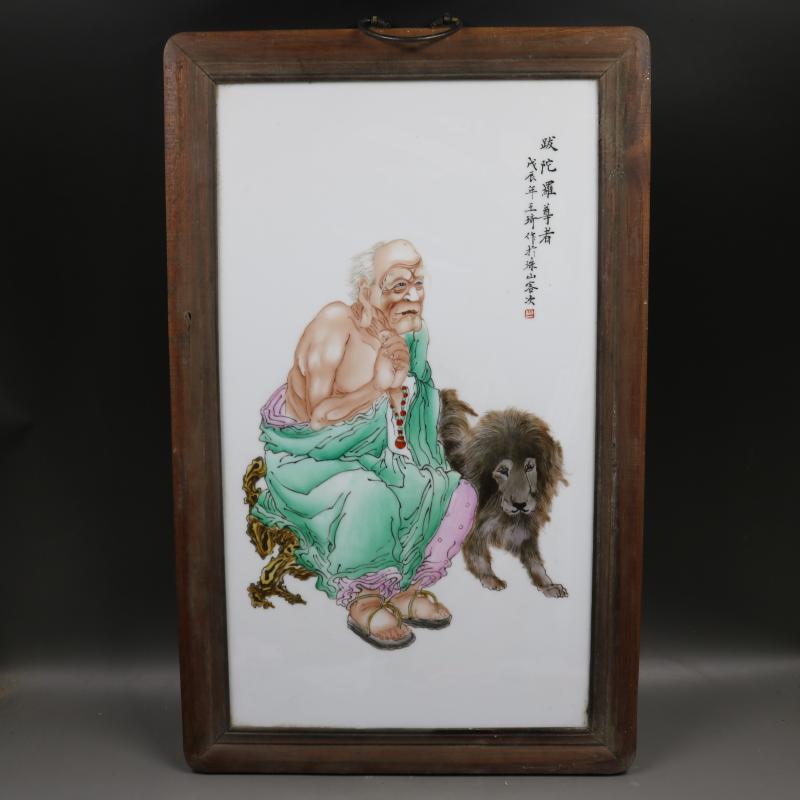 [6]民國手繪粉彩人物十八羅漢老瓷板掛畫壁畫仿古工藝品老貨瓷器擺件1入