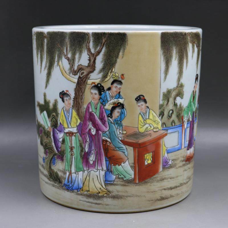 民國粉彩西廂記人物筆筒手繪仿古文房瓷器家居裝飾擺件古董古玩1入