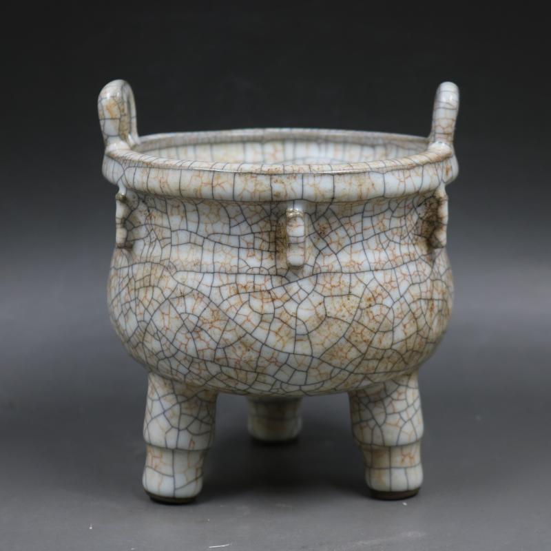 [3]宋哥窯金絲鐵線三足香爐仿古工藝品家居裝飾瓷器擺件古董古玩收藏1入
