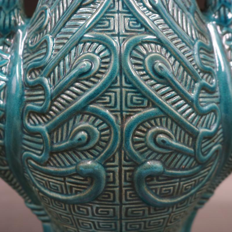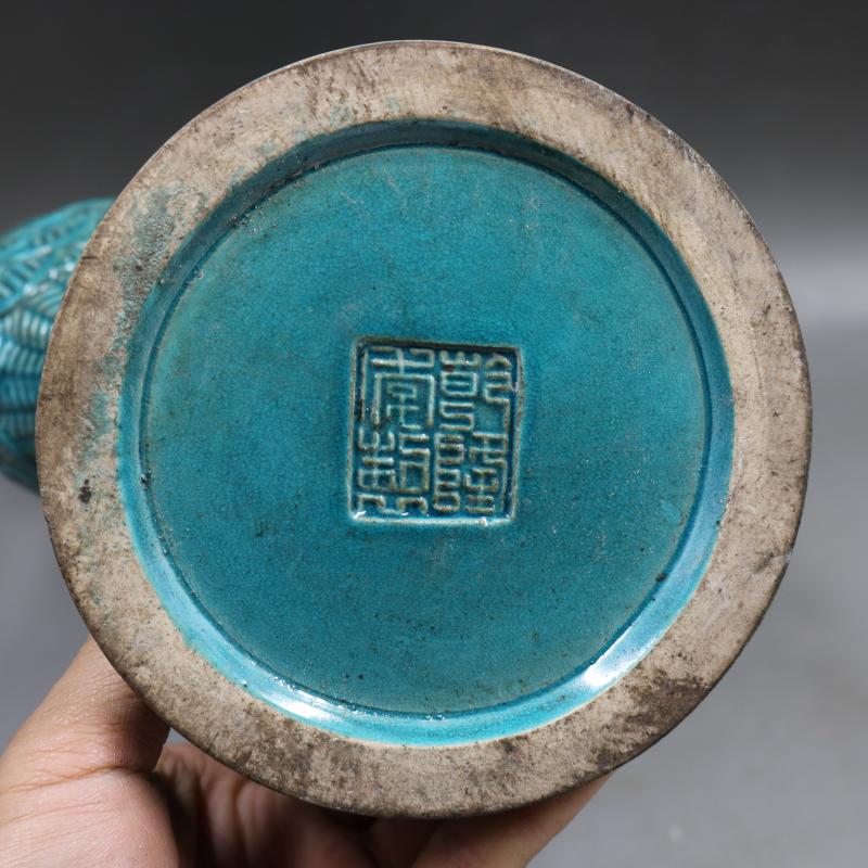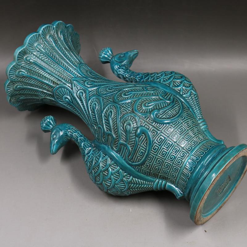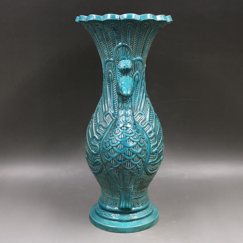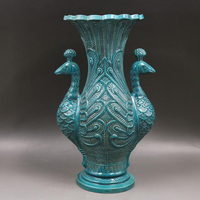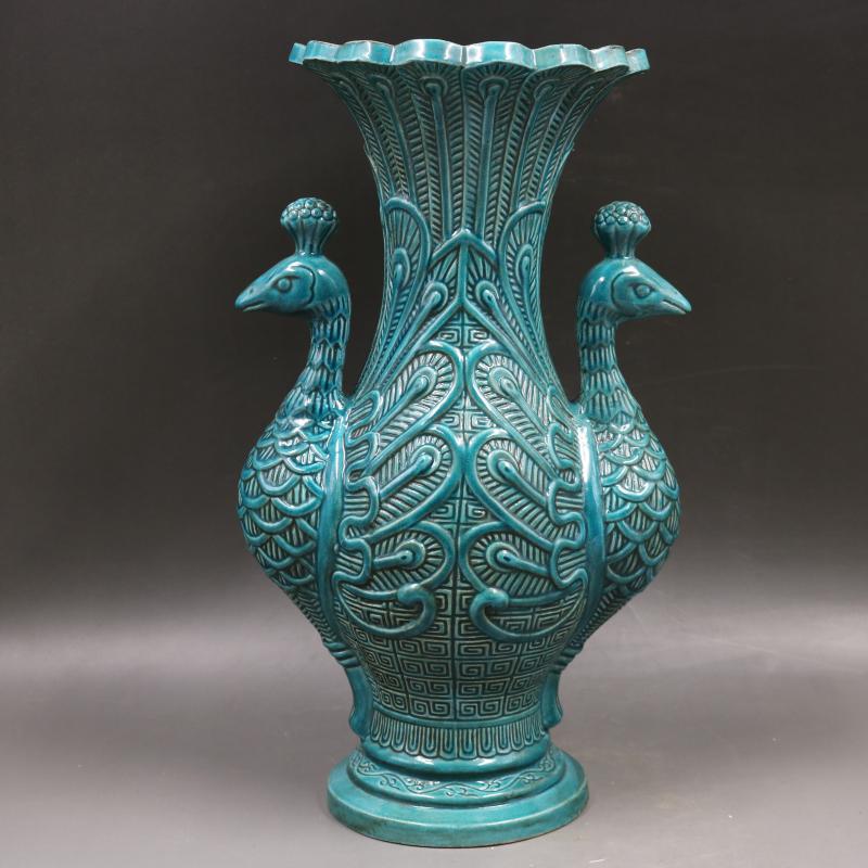 清乾隆綠釉雕刻孔雀瓶仿古工藝品家居博古架瓷器擺件古董古玩收藏1入