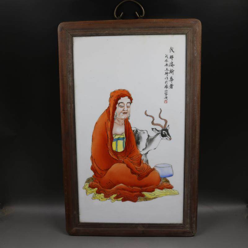民國手繪粉彩人物十八羅漢老瓷板掛畫壁畫仿古工藝品老貨瓷器擺件1入