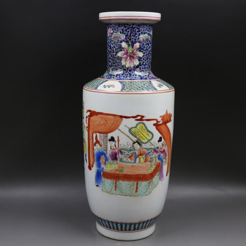 清康熙粉彩人物棒槌瓶仿古工藝家居裝飾瓷器擺件古董古玩老貨收藏1入
