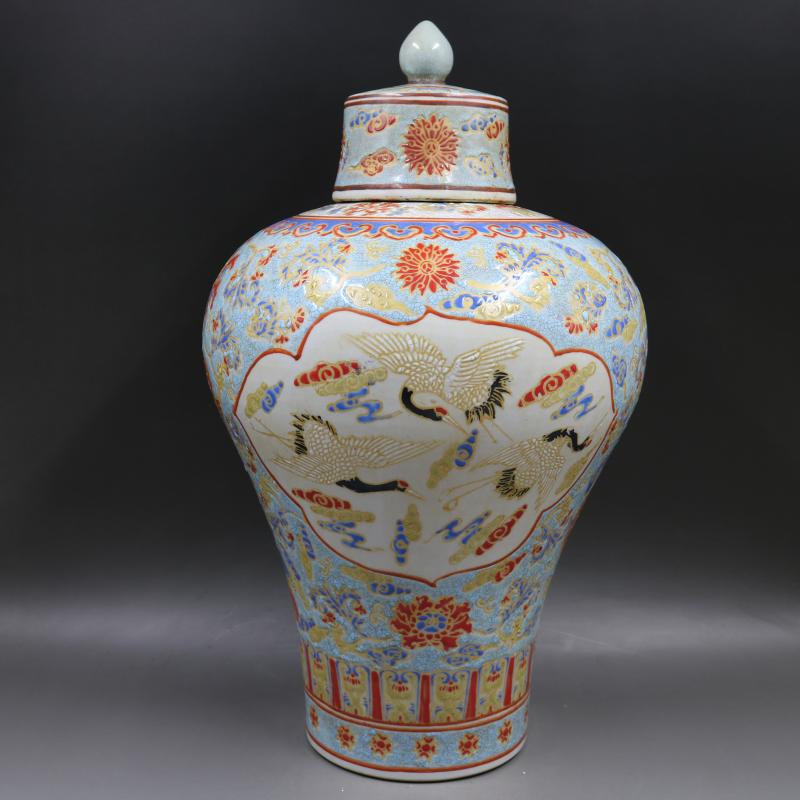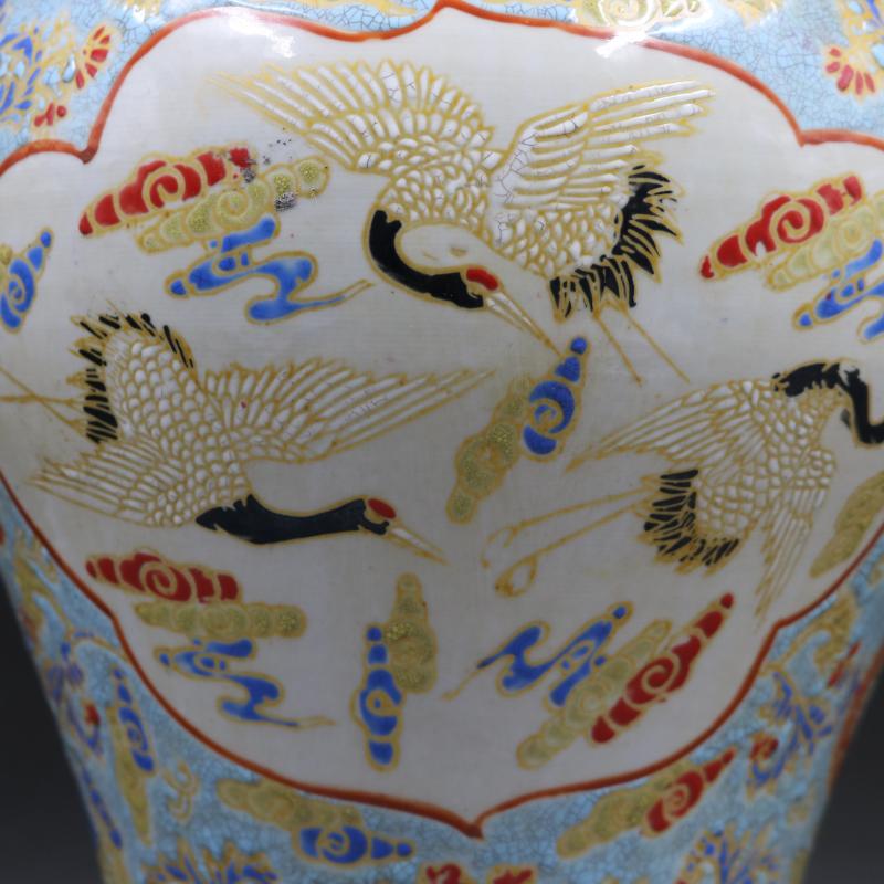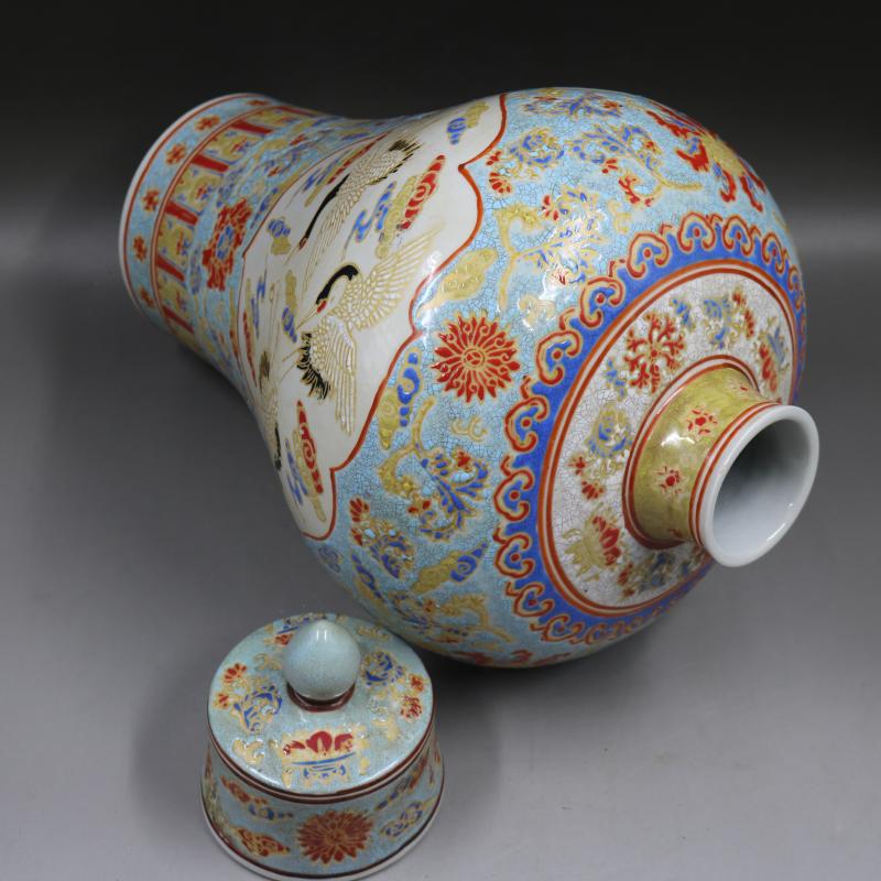 清乾隆夜光瓷粉彩鶴紋賞瓶仿古工藝品家居裝飾瓷器擺件古董古玩1入
