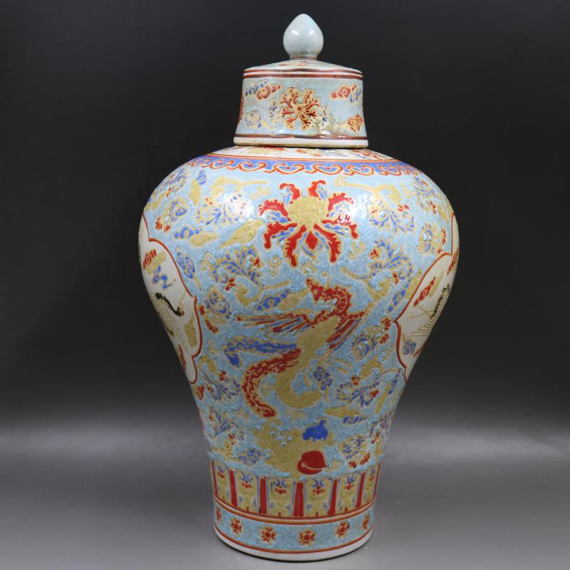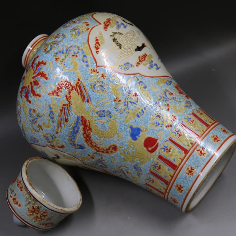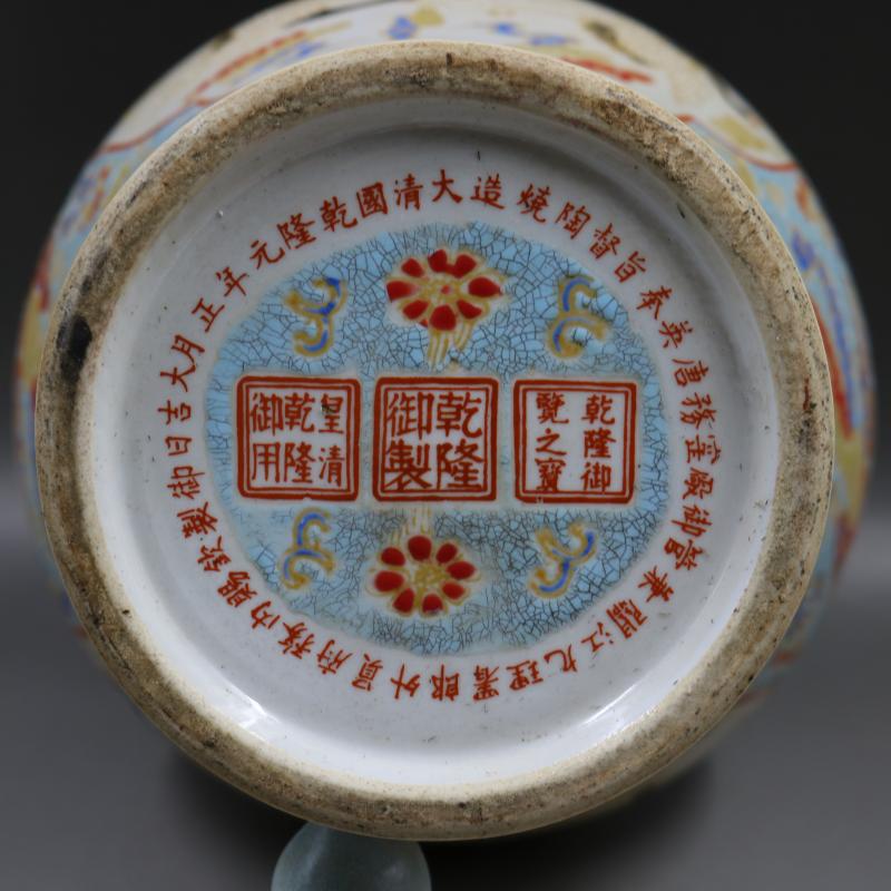尺寸 高43.8厘米 口徑7厘米 肚徑26厘米 底徑13.6厘米