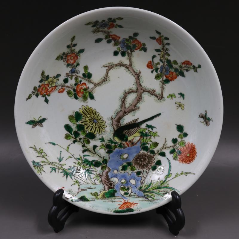 [2]清康熙花鳥喜上眉梢古彩盤仿古工藝瓷器家居裝飾古玩擺件古董收藏1入