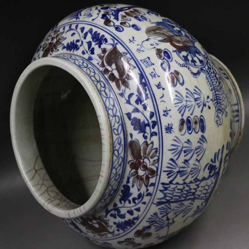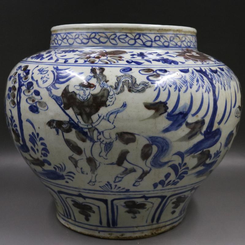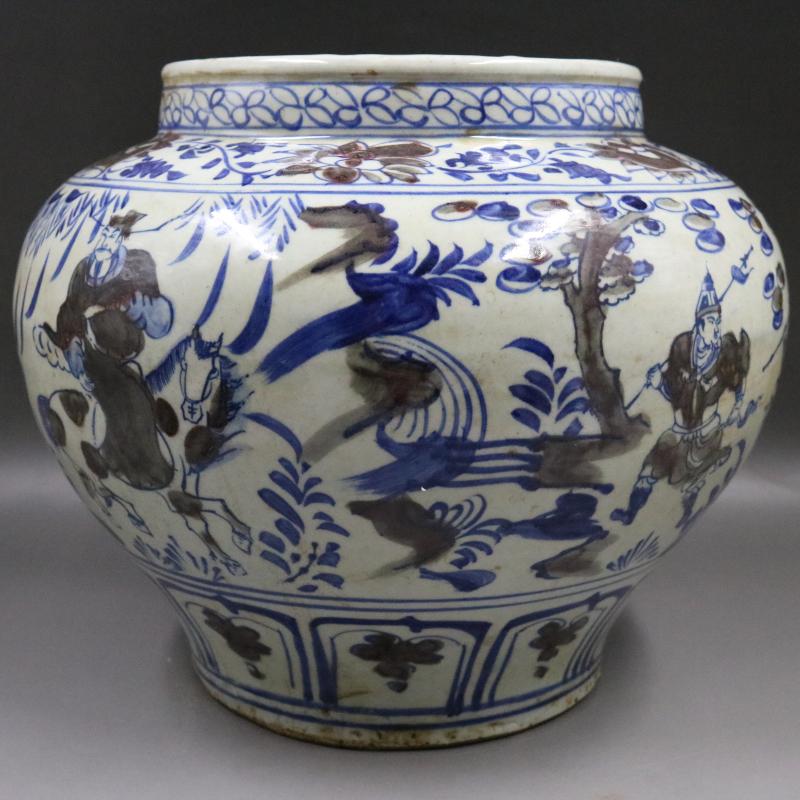 元青花釉里紅鬼谷子下山圖紋罐手繪仿古老貨瓷器家居擺件古董古玩1入