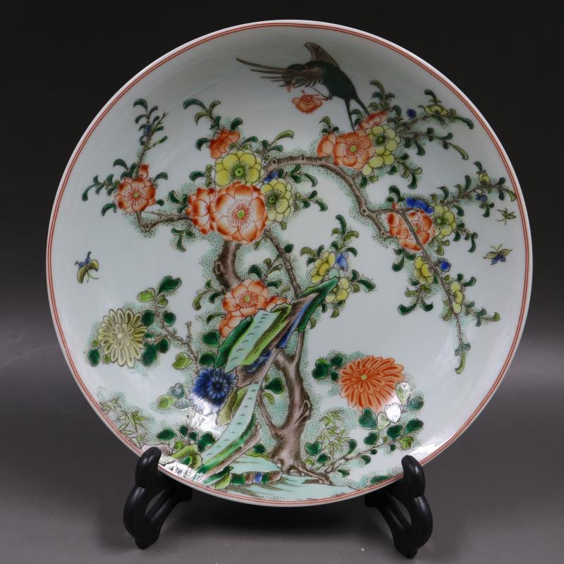 清康熙花鳥喜上眉梢古彩盤仿古工藝瓷器家居裝飾古玩擺件古董收藏1入