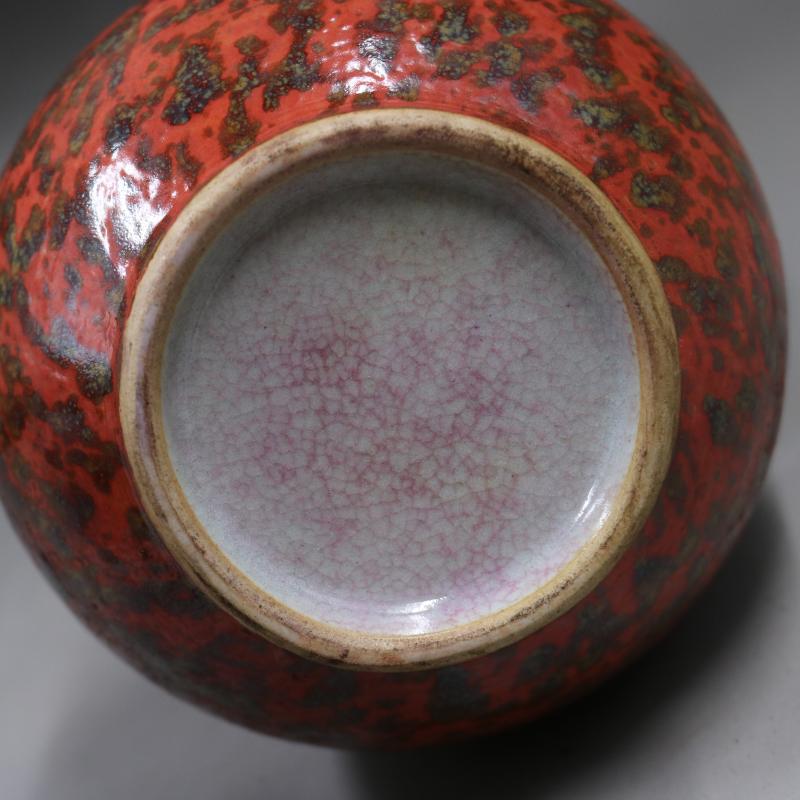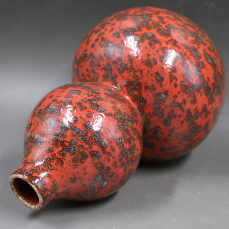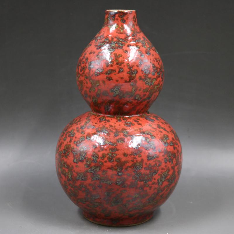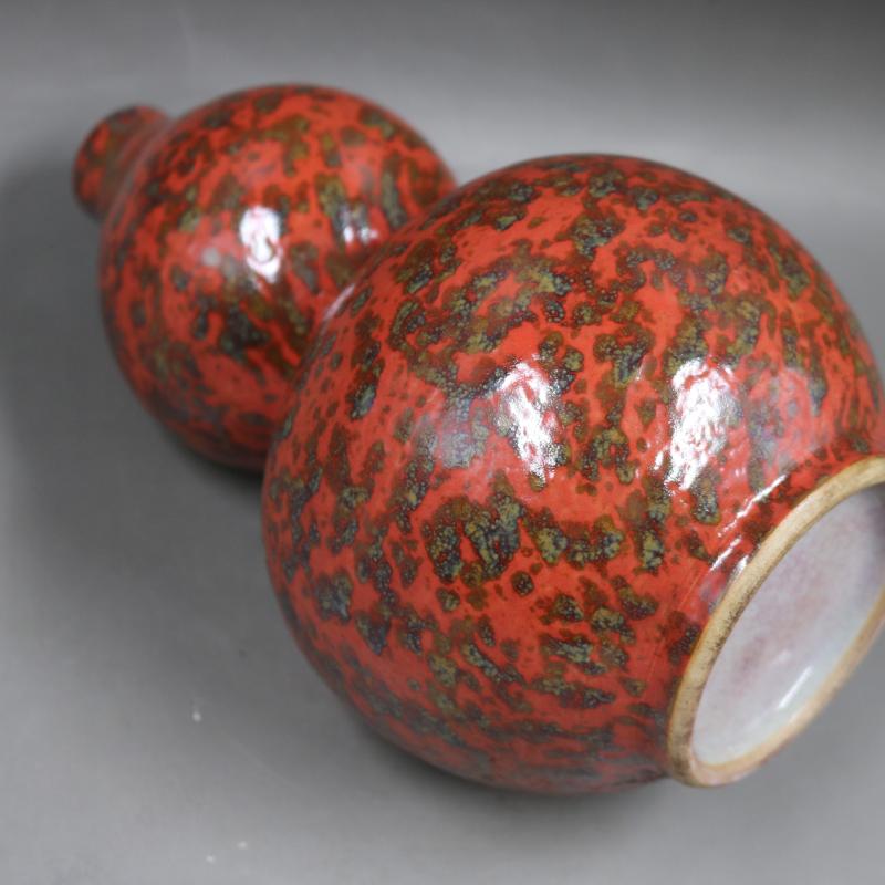 清光緒窯變紅花釉葫蘆瓶手工仿古老貨瓷器家居博古架裝飾古玩擺件1入