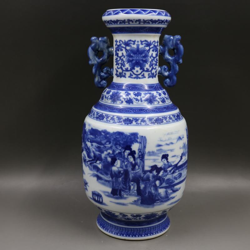 清乾隆青花人物瓷王瓶仿古老貨瓷器家居博古架裝飾擺件古董古玩1入