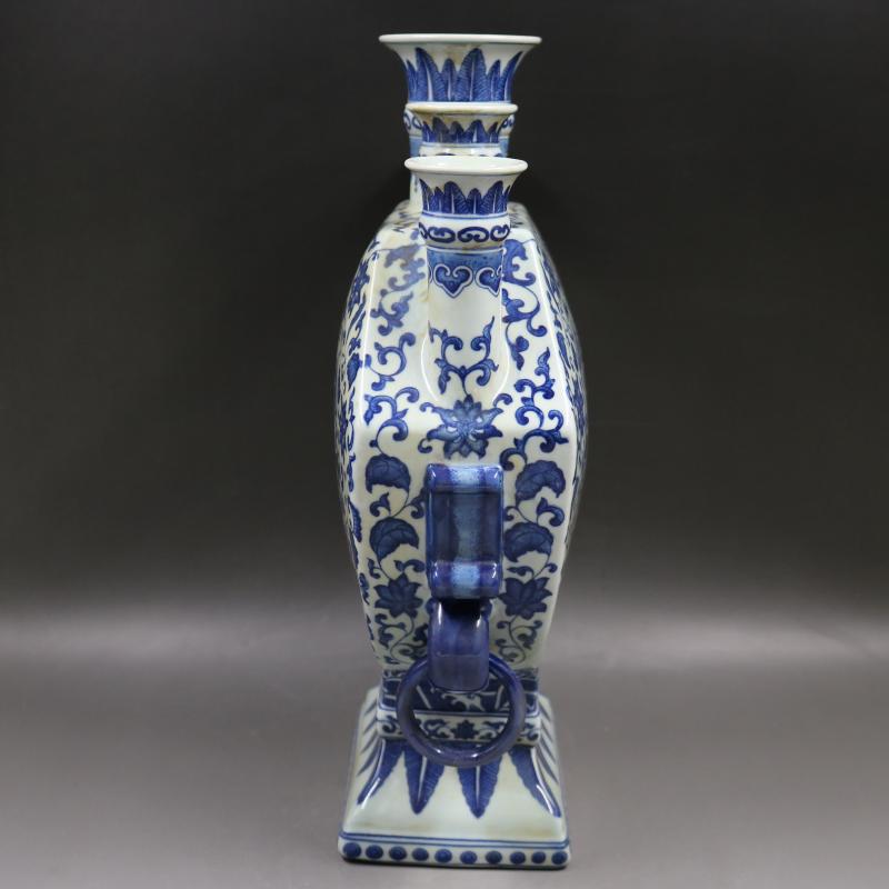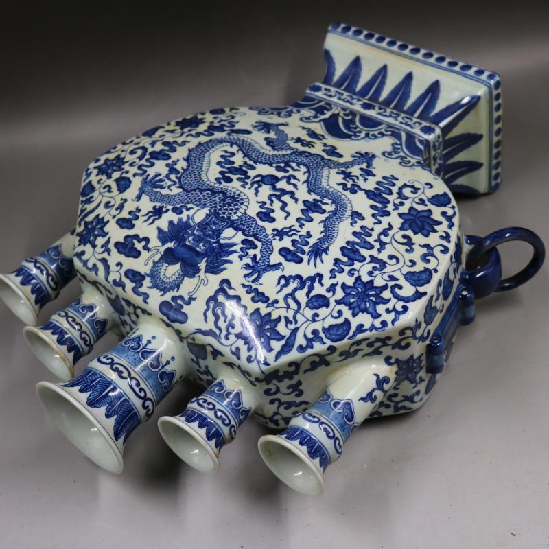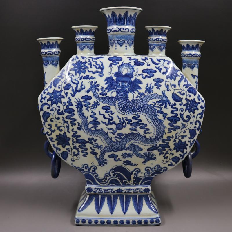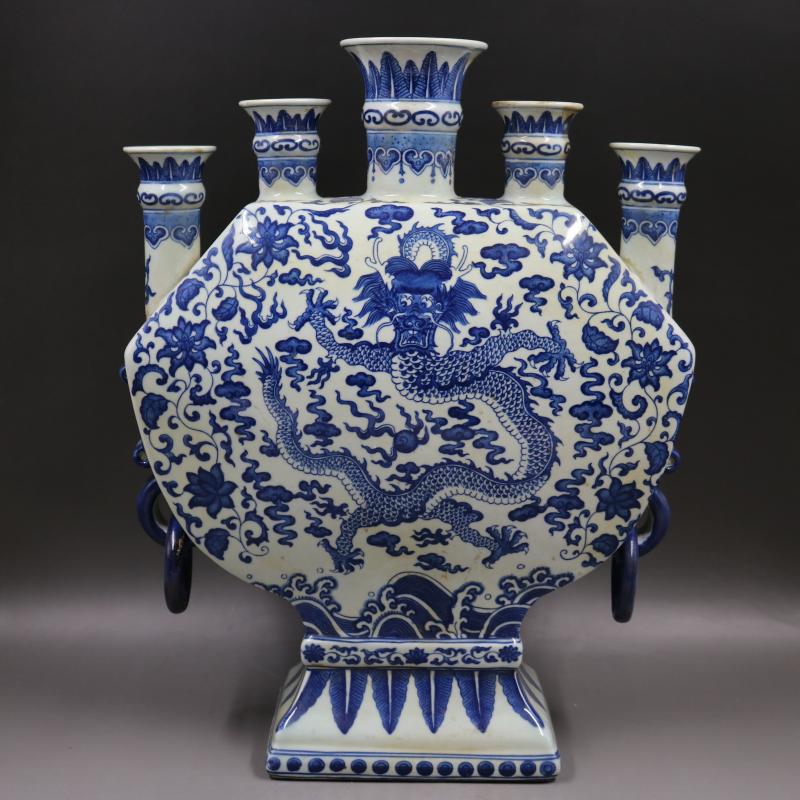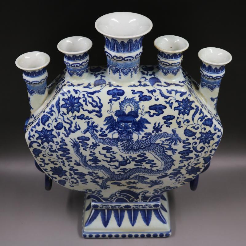 清乾隆青花穿花龍紋五孔瓶仿古工藝瓷器家居博古架裝飾古玩擺件1入