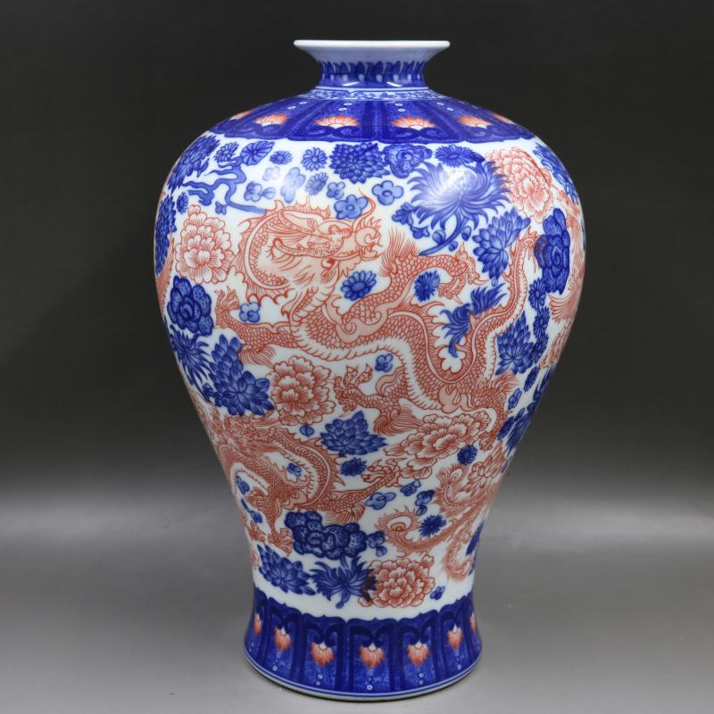 清乾隆青花釉里紅穿花龍鳳紋梅瓶仿古瓷器家居裝飾擺件古董古玩1入