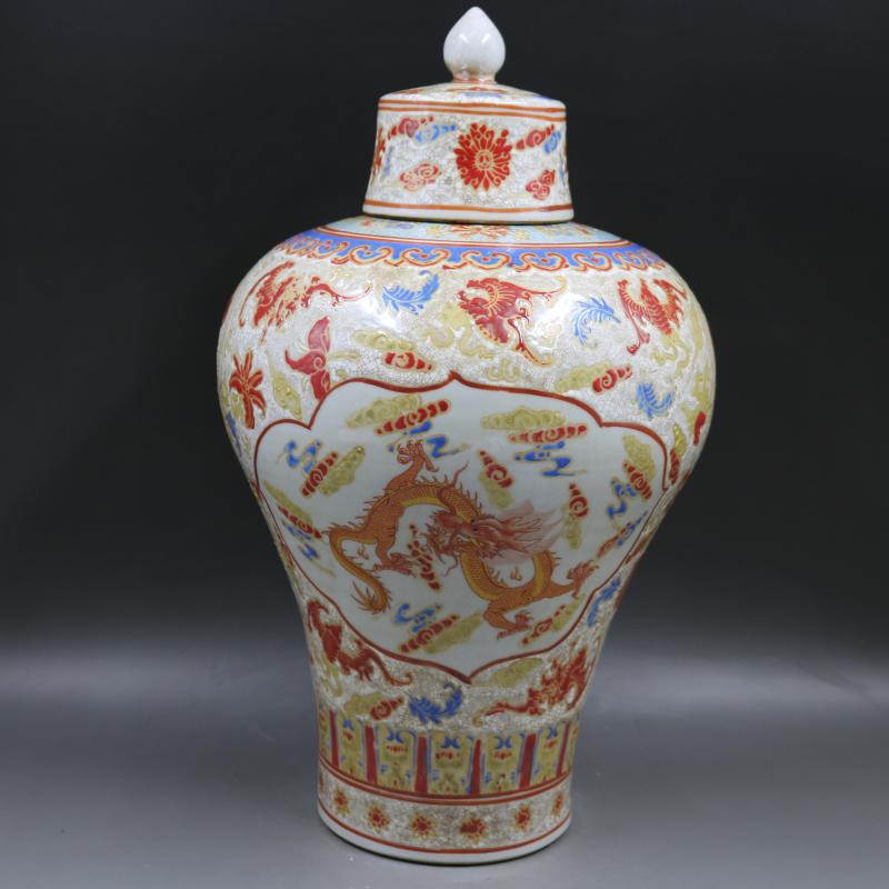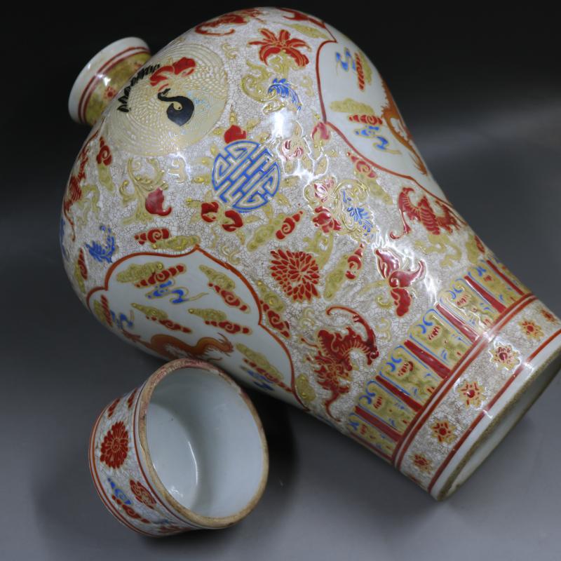 [2]清乾隆夜光瓷器福壽龍紋梅瓶仿古老貨瓷器家居裝飾擺件古董古玩1入